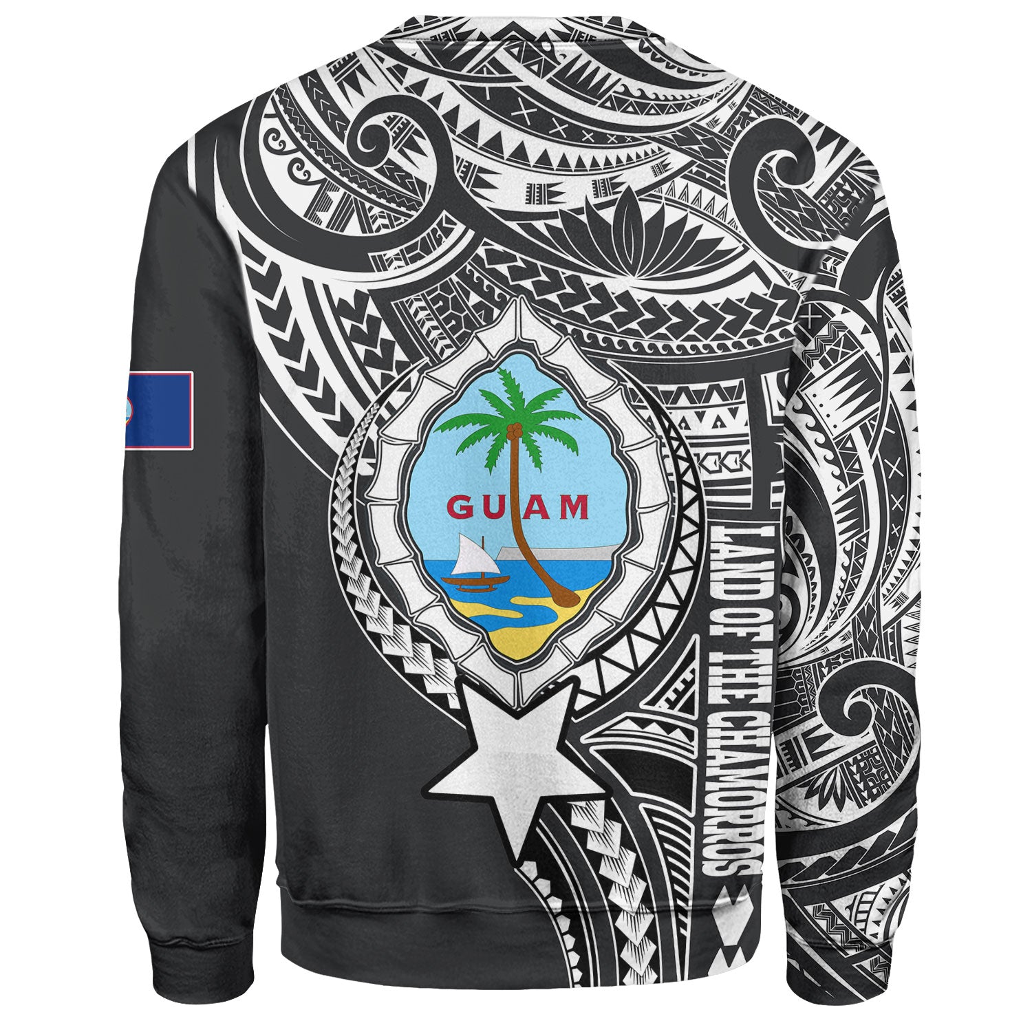 Guam Sweatshirt Custom Guam Coat Of Arms Polynesian Half Body Tattoo Black Style