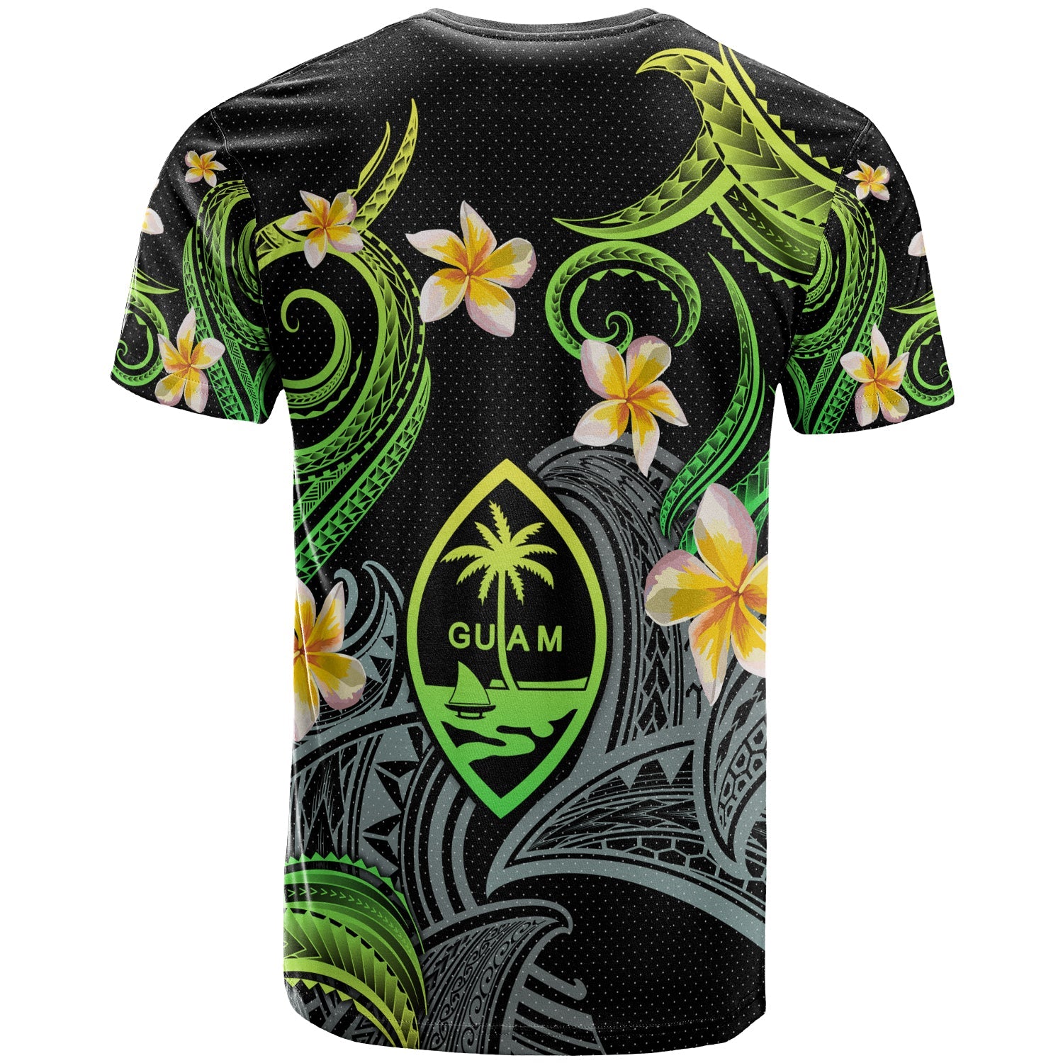 Guam T-shirt - Custom Personalised Polynesian Waves with Plumeria Flowers (Green)