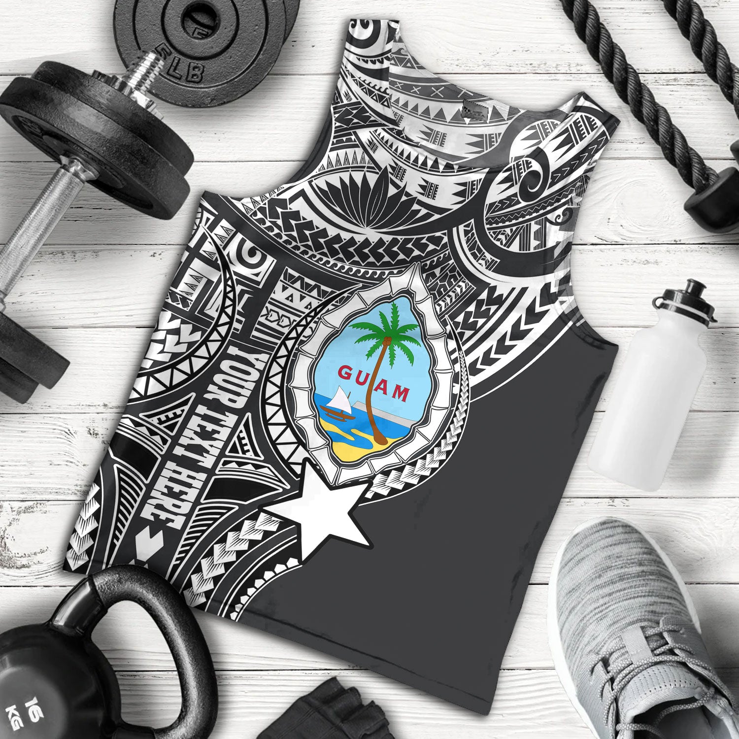 Guam Tank Top Custom Guam Coat Of Arms Polynesian Half Body Tattoo Black Style