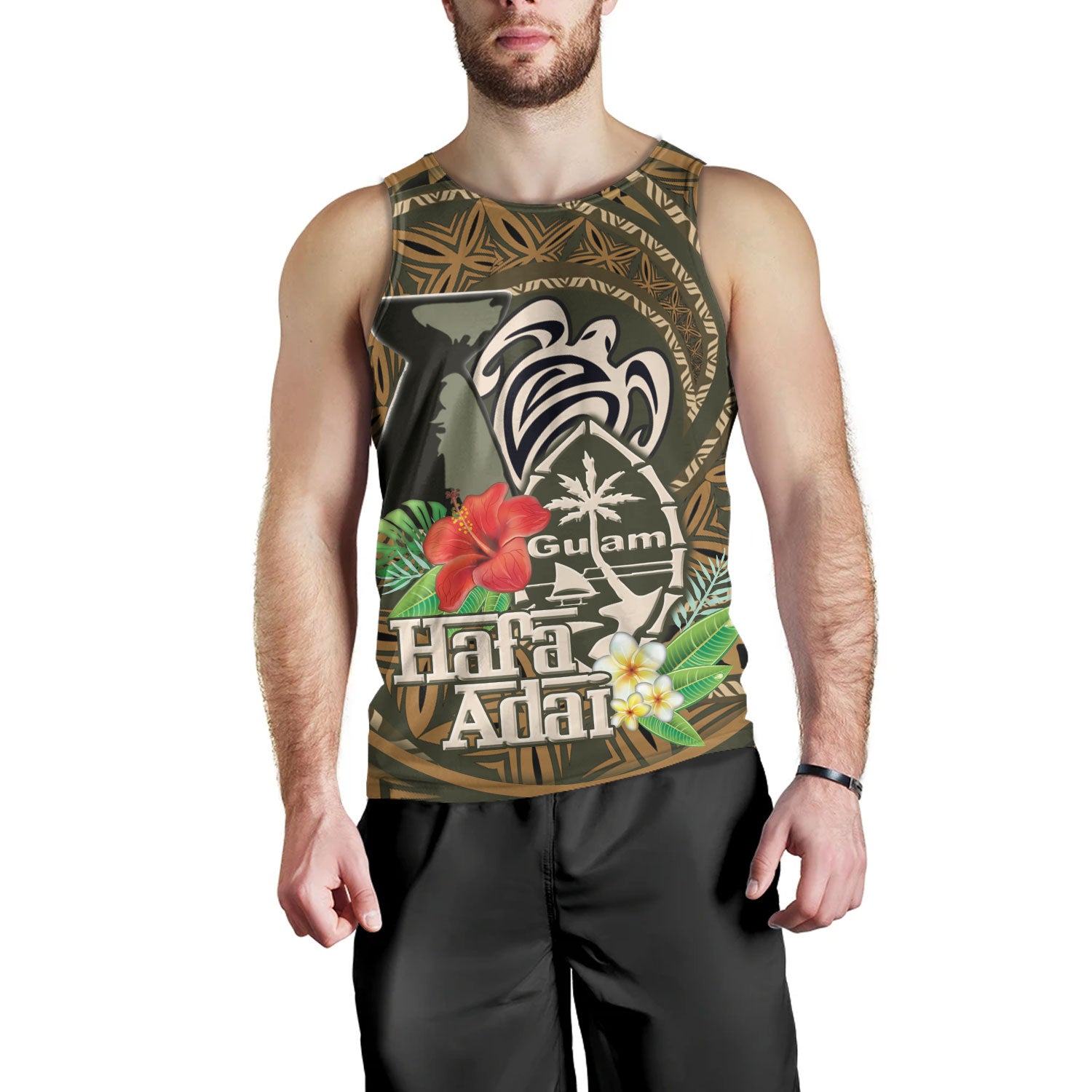 Guam Tank Top Hafa Adai Seal Flower Tropical Retro Style