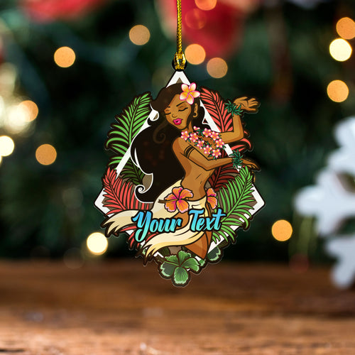 Hawaii Acrylic And Wooden Ornament Hula Girls Tropical Flowers