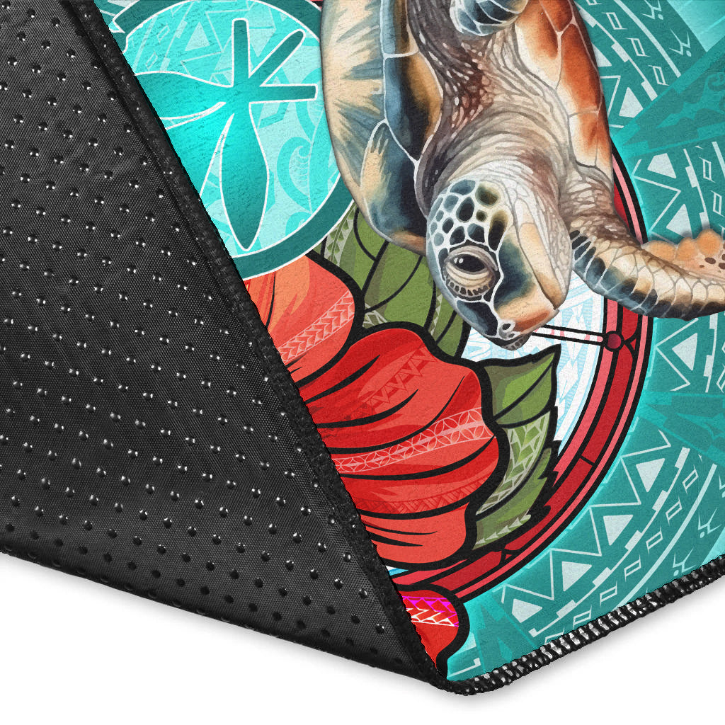 Hawaii Area Rug Hawaiian Map Turtle Hibiscus Flowers Polynesian Patterns Style