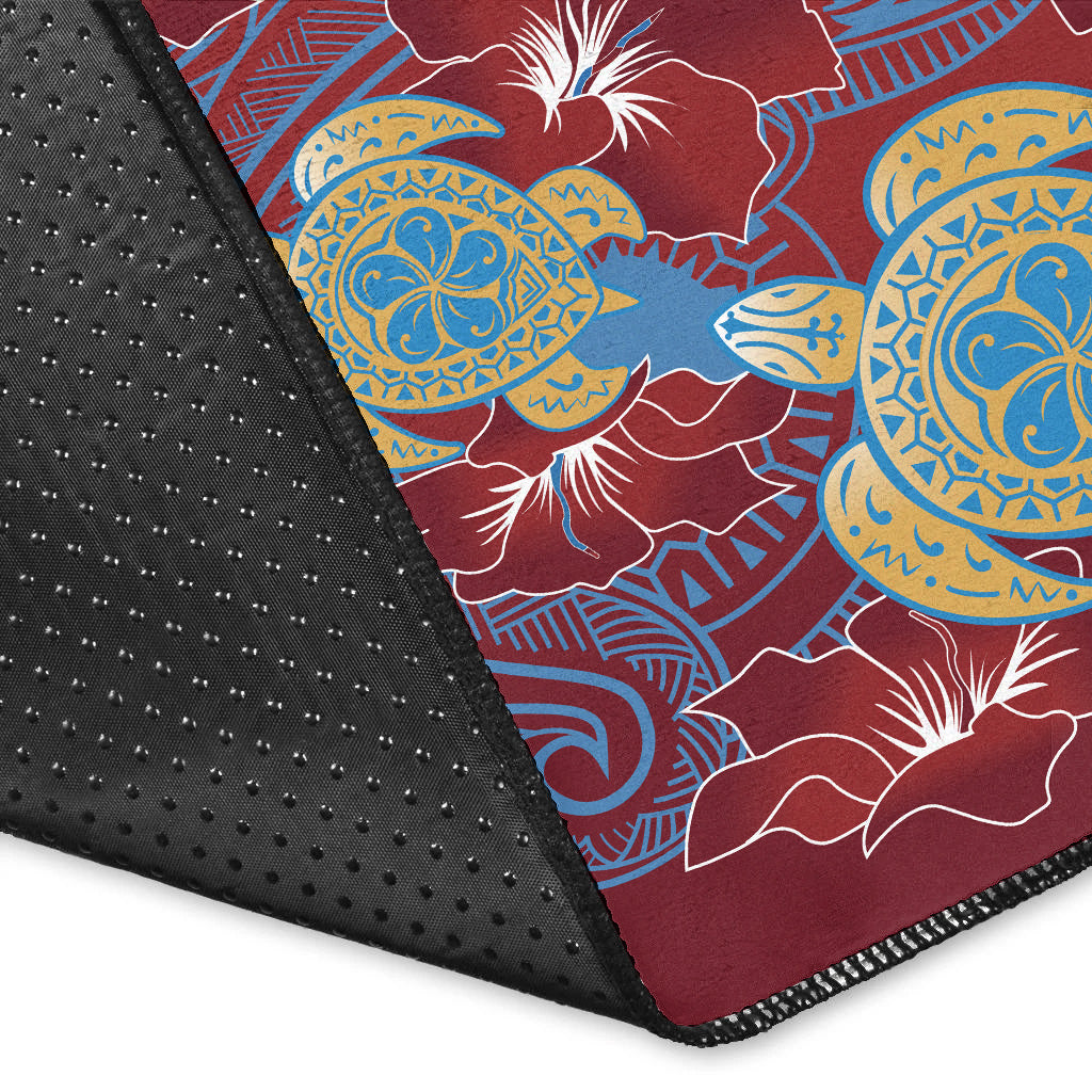 Hawaii Area Rug Polynesian Cultures Turtle Couple Tropical Flowers Red Color