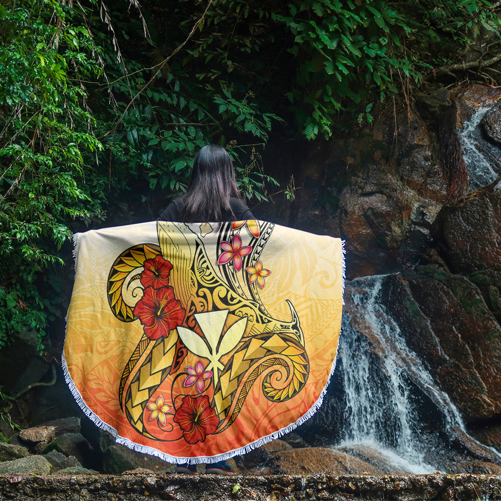 Hawaii Beach Blanket Humpback Whale with Hibiscus Plumeria