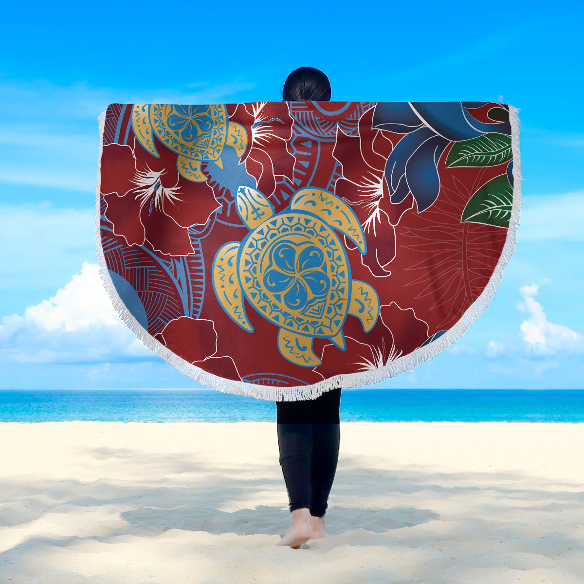 Hawaii Beach Blanket Polynesian Cultures Turtle Couple Tropical Flowers Red Color