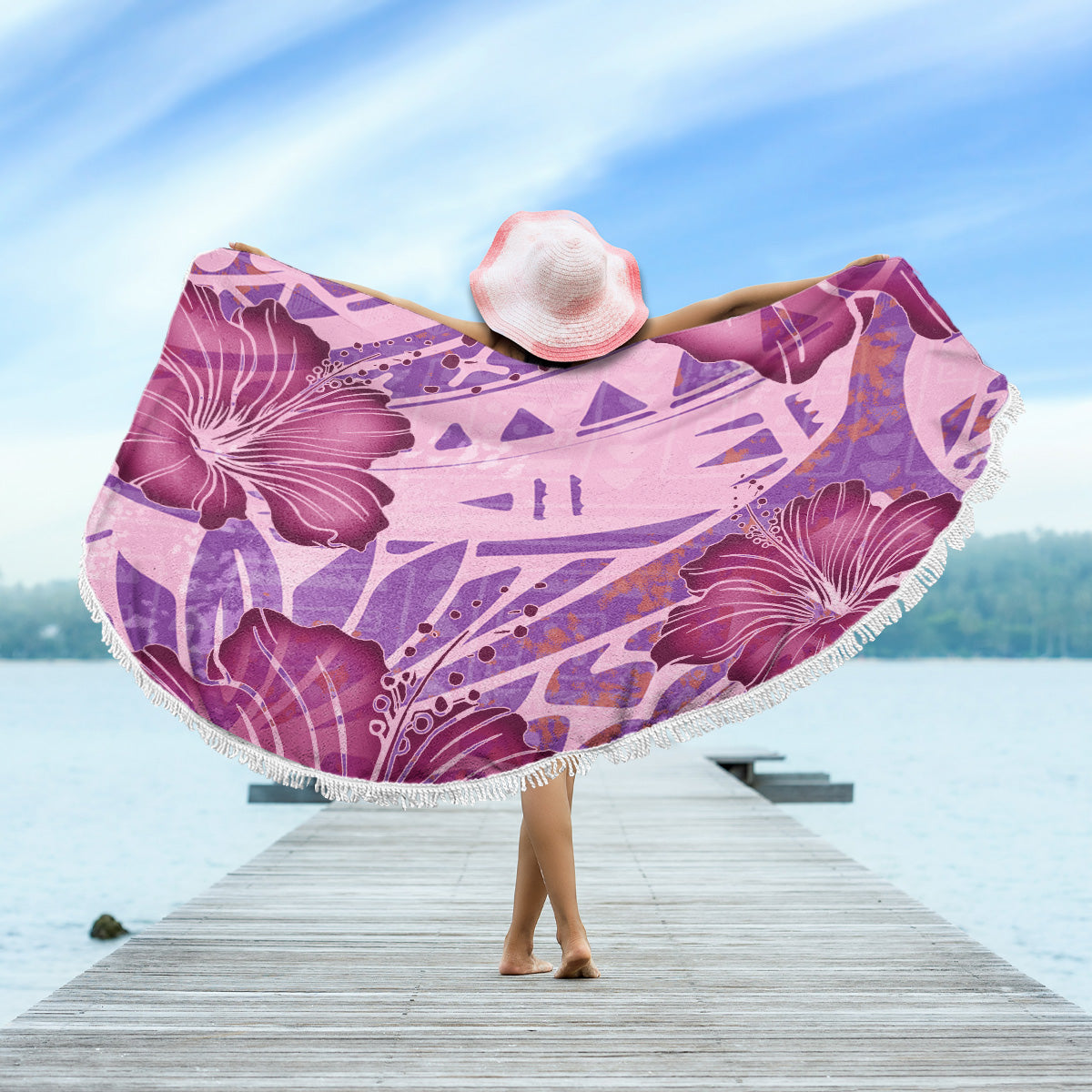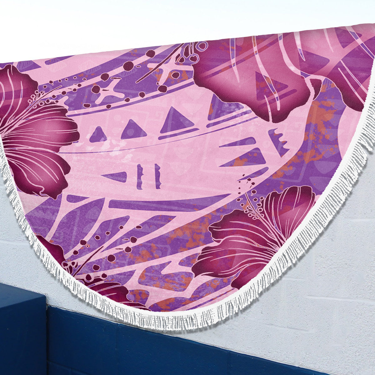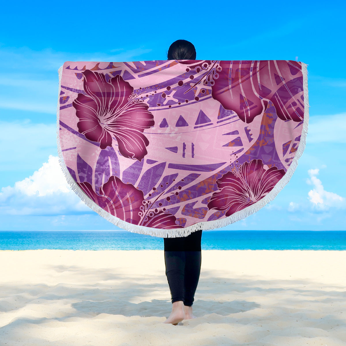 Hawaii Beach Blanket Polynesian Motif Purple Hibiscus