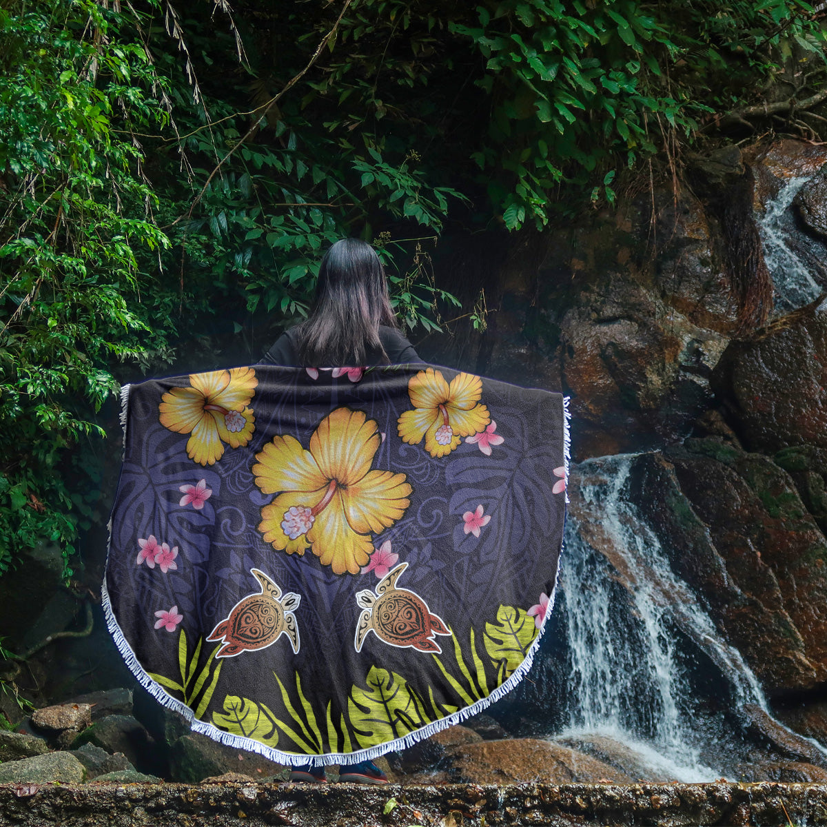 Hawaii Beach Blanket Polynesian Patterns Turtle Couple Hibiscus Plumeria Flowers