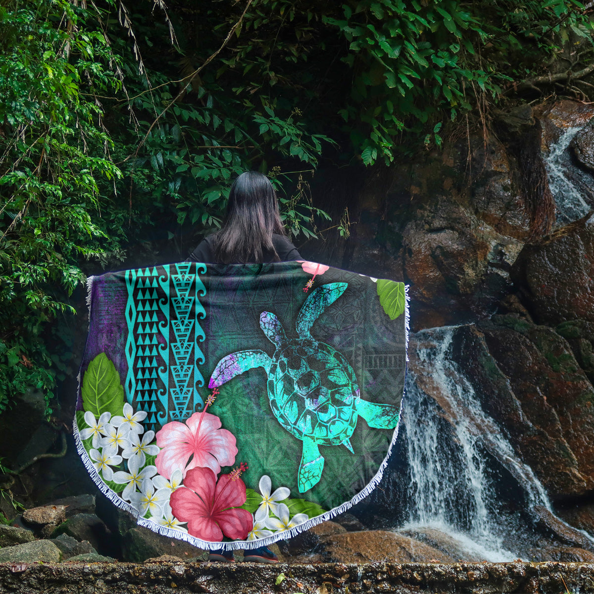 Hawaii Beach Blanket Sea Turtle Abstract Background With Tropical Flowers Hibiscus And Plumeria