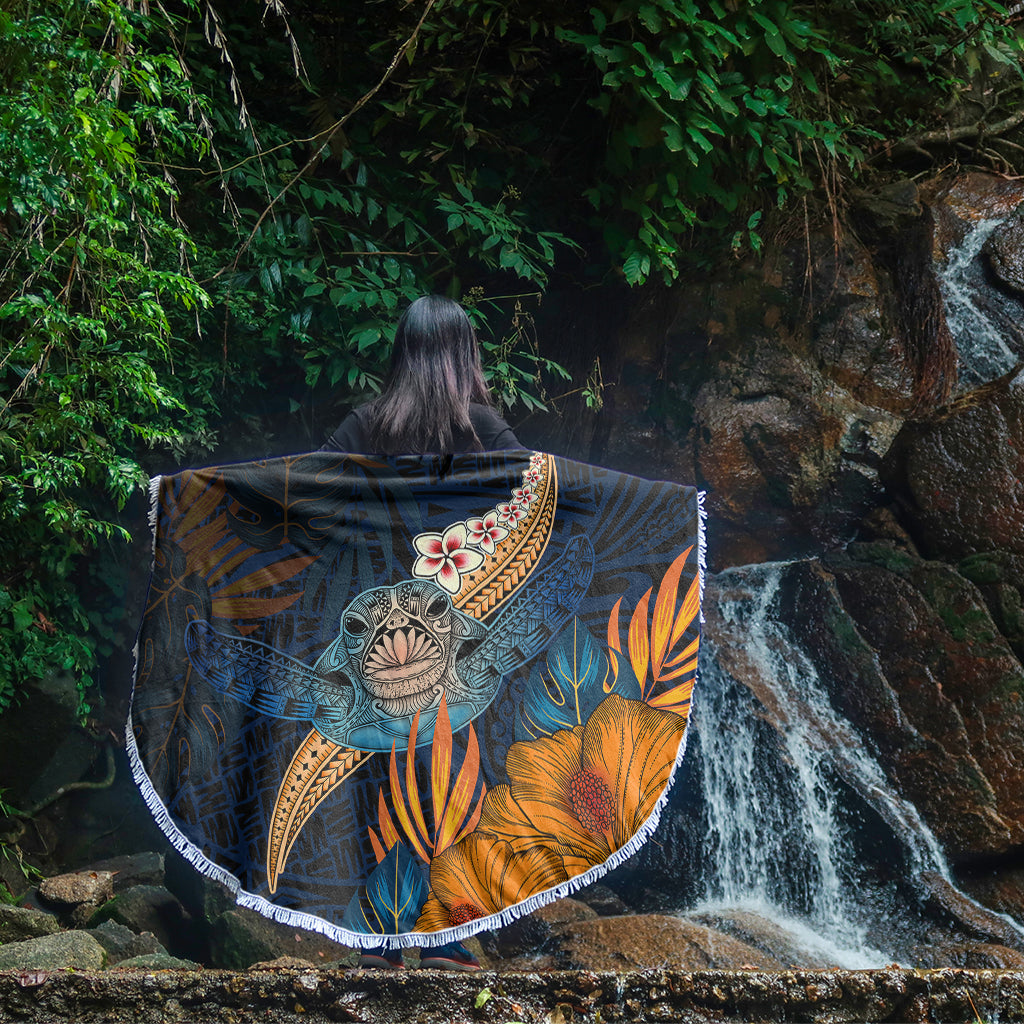 Hawaii Beach Blanket Turtle Design With Hibiscus Tropical Style