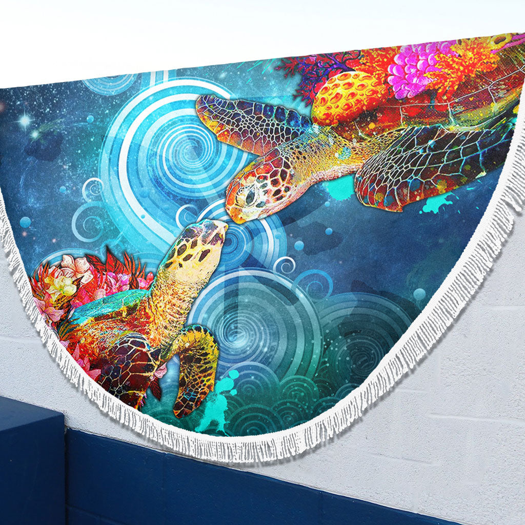 Hawaii Beach Blanket Turtle Kiss Ocean Galaxy