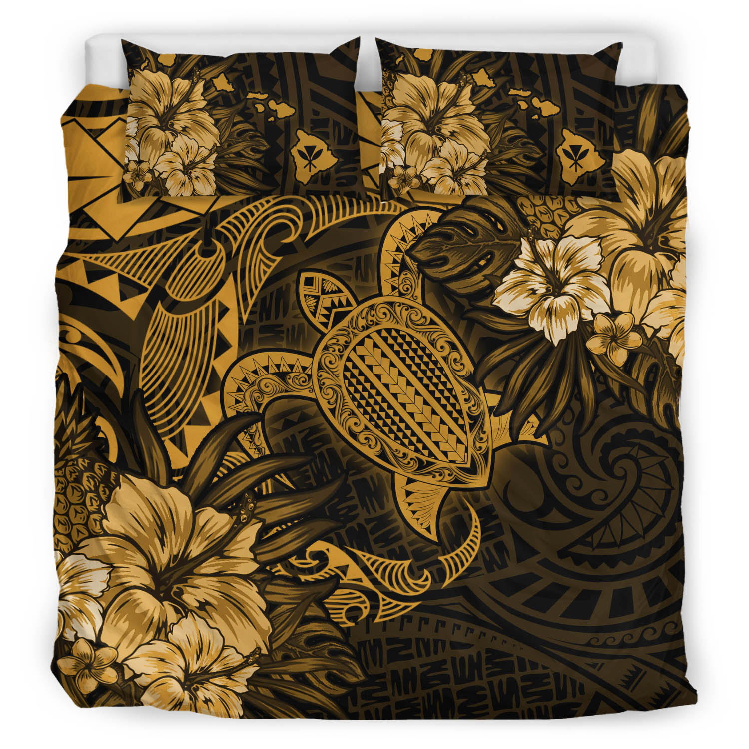 Hawaii Bedding Set - Hawaii Polynesian Turtle Tropical Golden Bedding Set