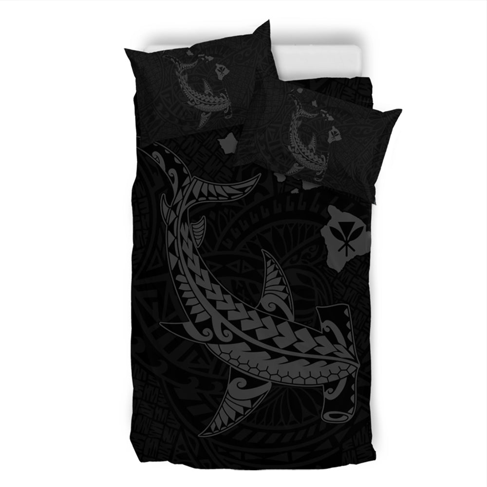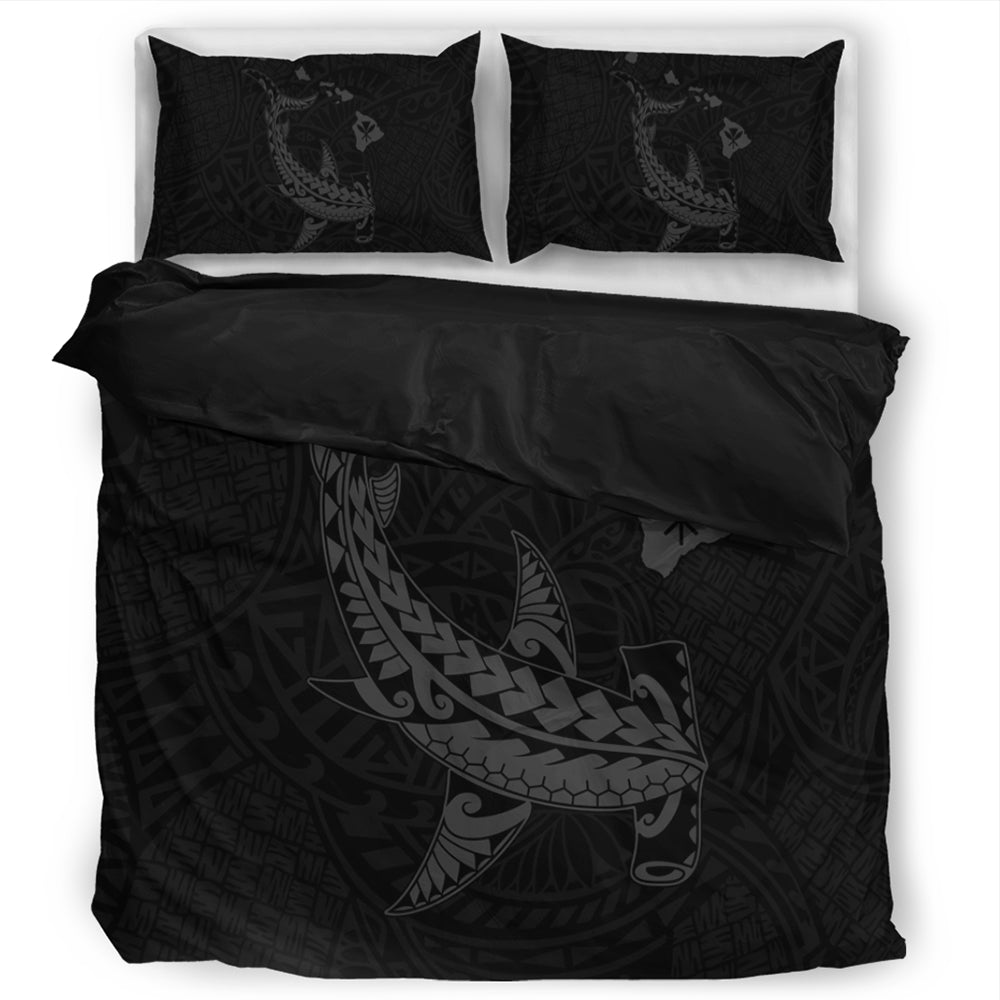 Hawaii Bedding Set Hawaiian Native Map Hammerhead Shark Gray