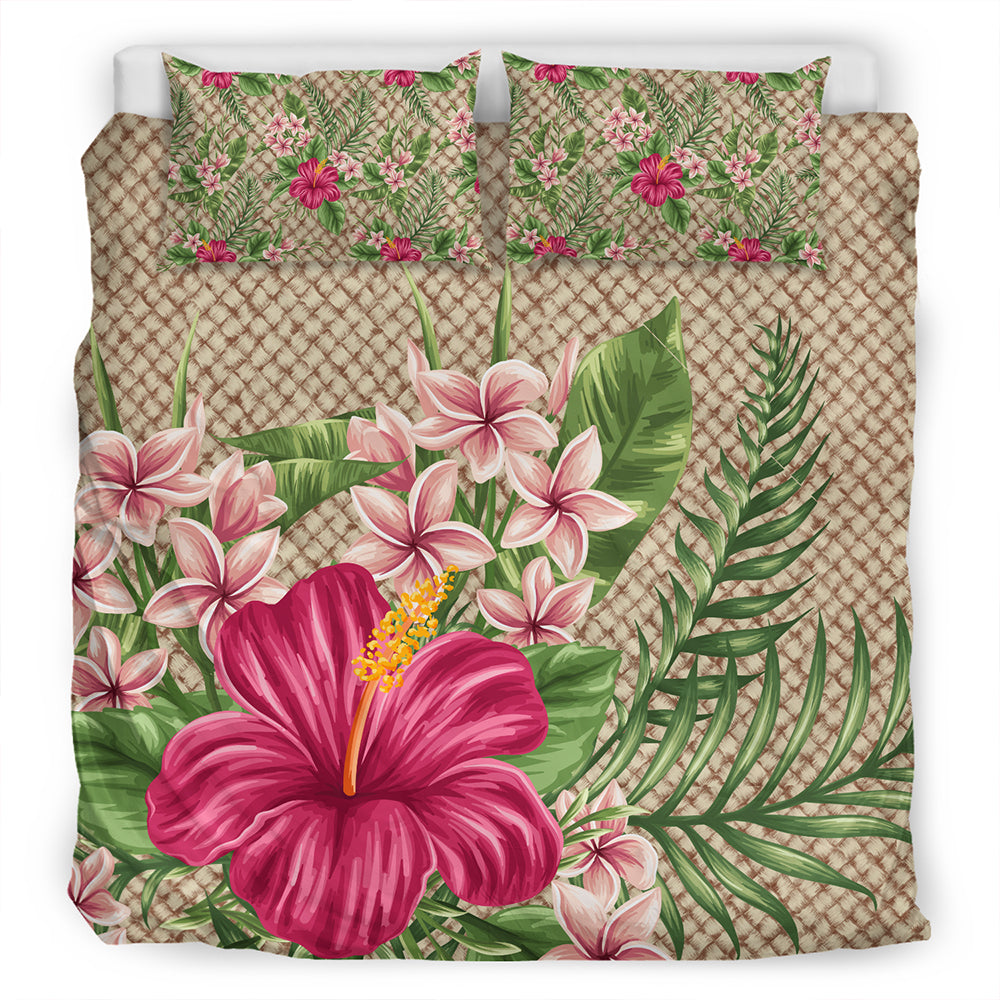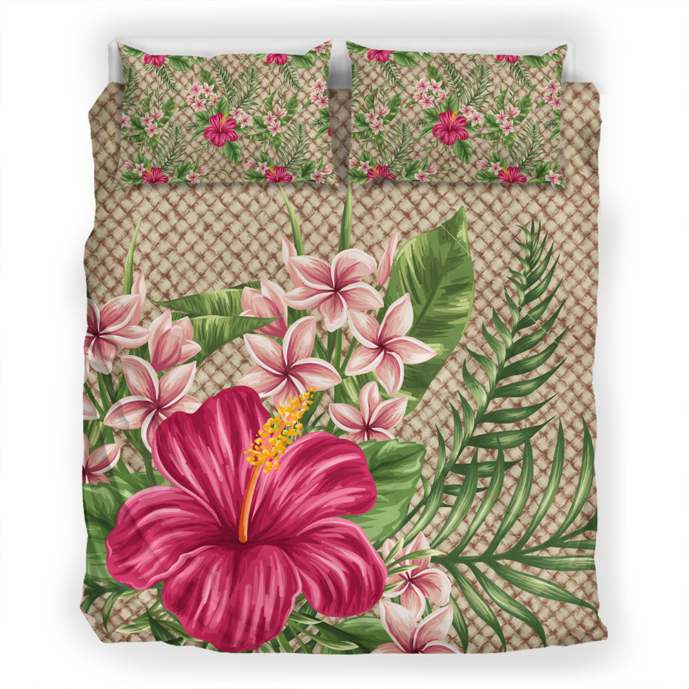 Hawaii Bedding Set Hibiscus Plumeria Palm Leaves Lauhala Background Polynesian