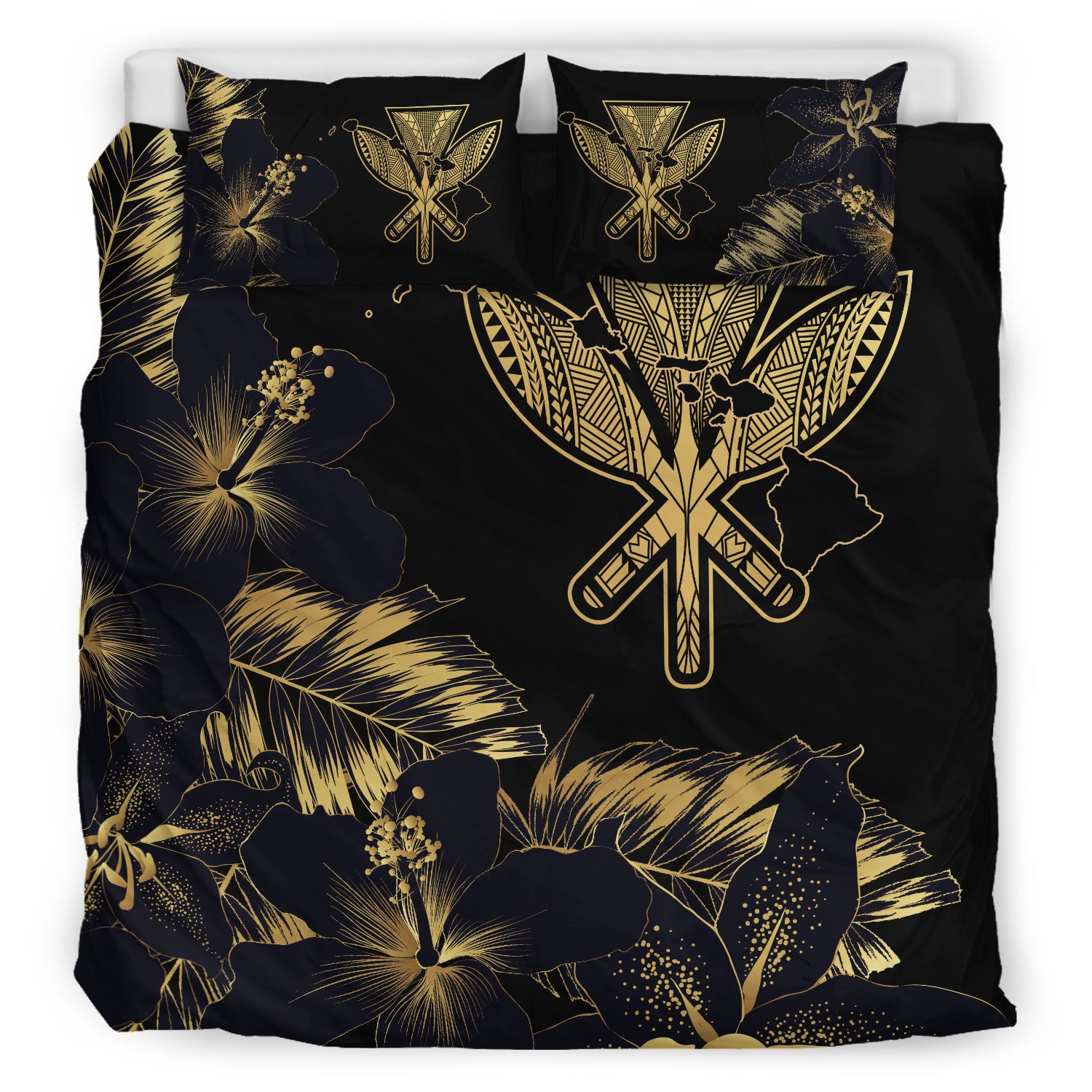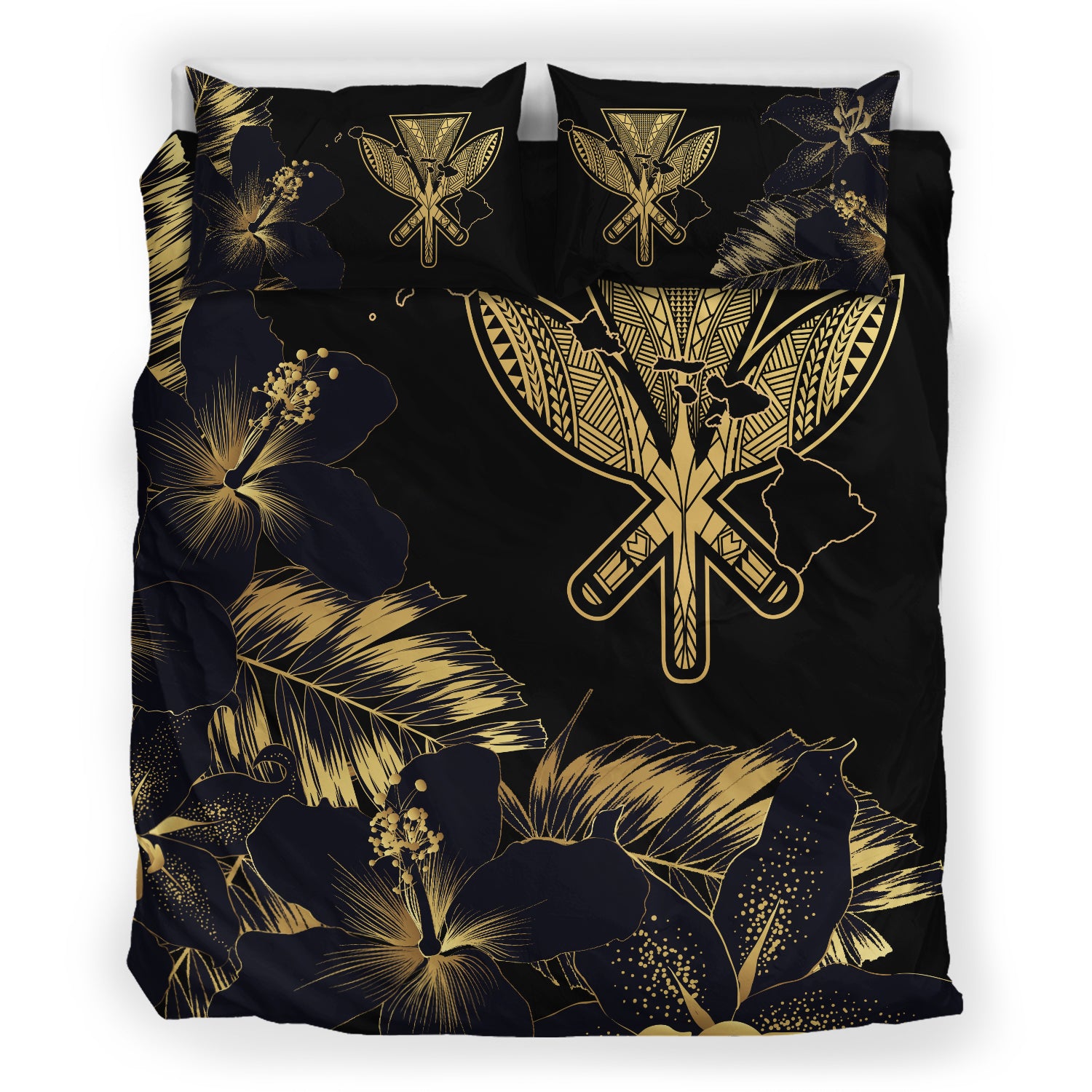 Hawaii Bedding Set - Hibiscus Tropical Hawaii Luxury Gold Bedding Set