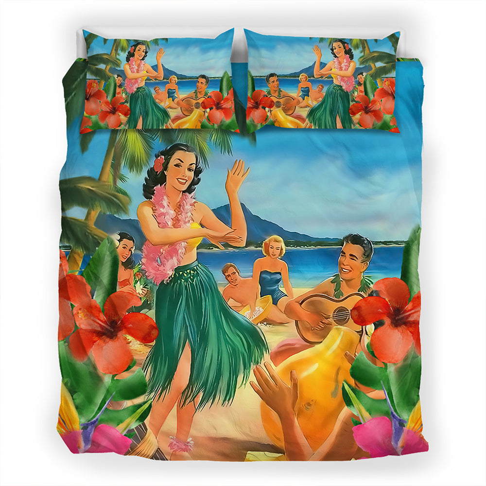 Hawaii Bedding Set Hula Dance On Beach