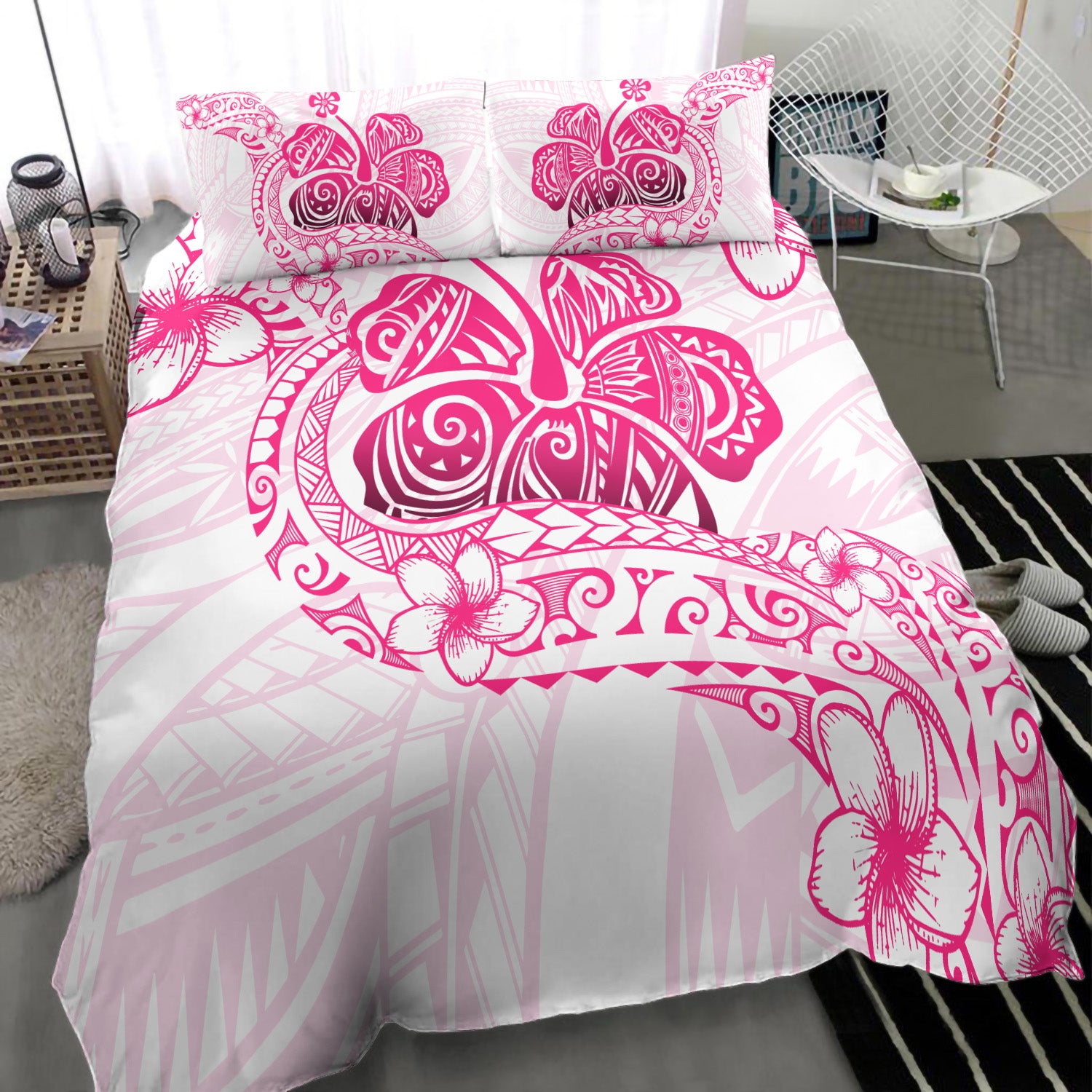 Hawaii Bedding Set Pink Hibiscus And Plumeria Flowers Polynesian Decor