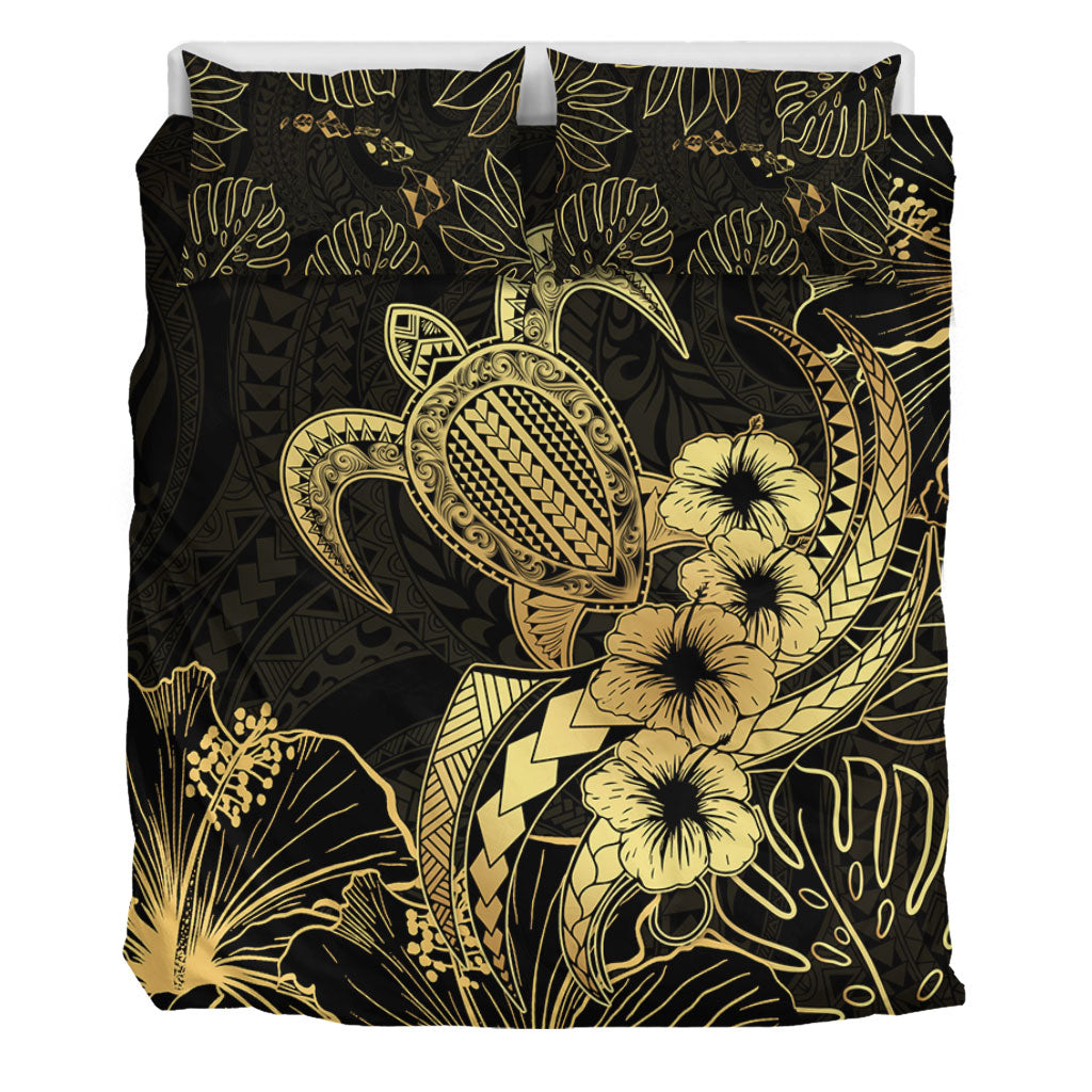 Hawaii Bedding Set Tribal Polynesia Floral Gold Art