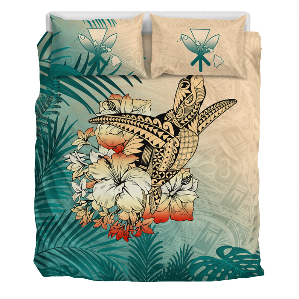 Hawaii Bedding Set Tropical Leaves Sea Turtle Tribal