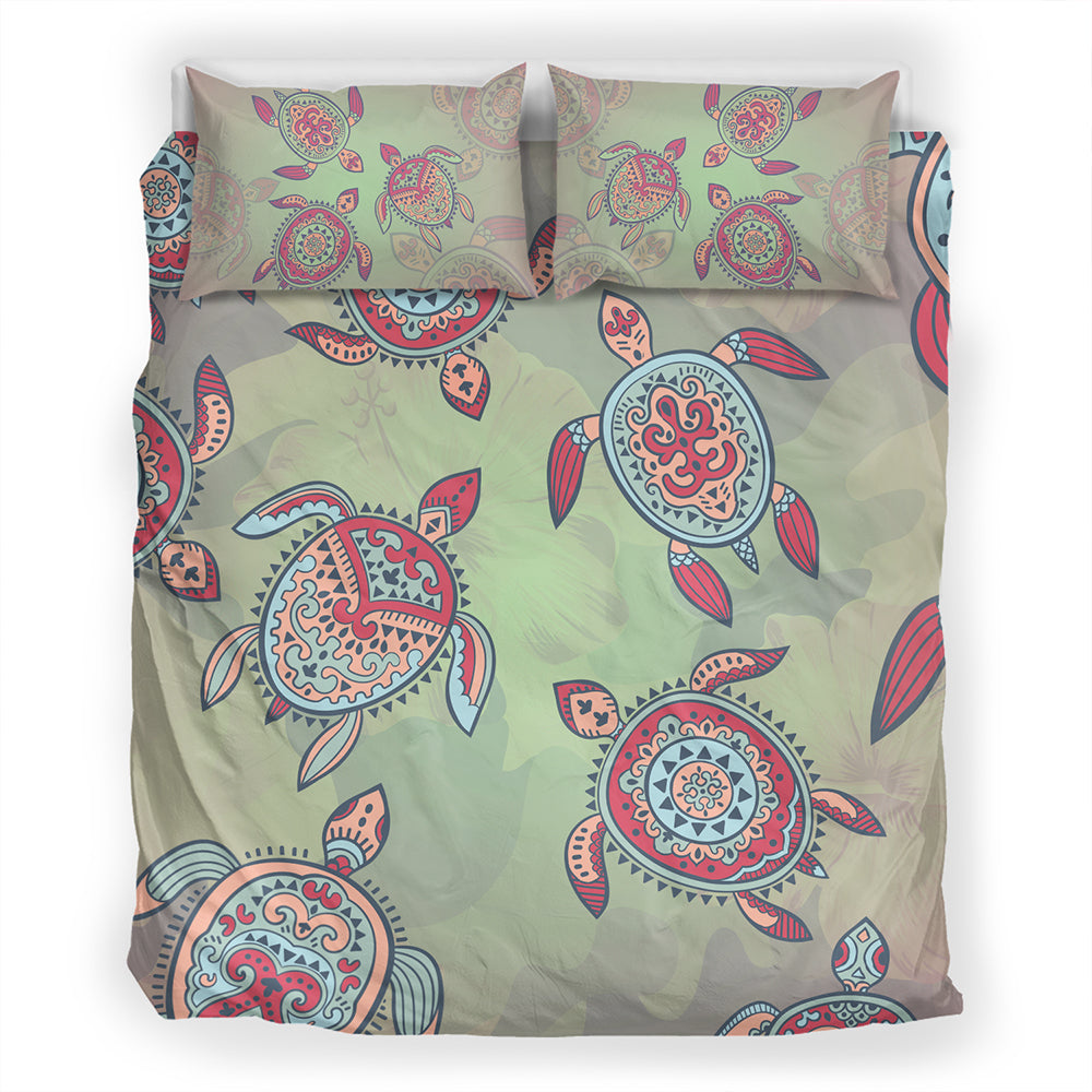 Hawaii Bedding Set Turtle Colorful Hibiscus Background