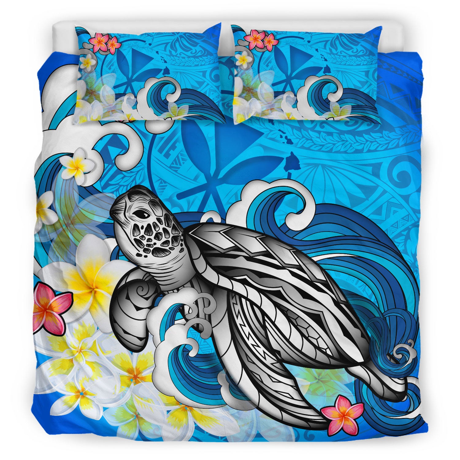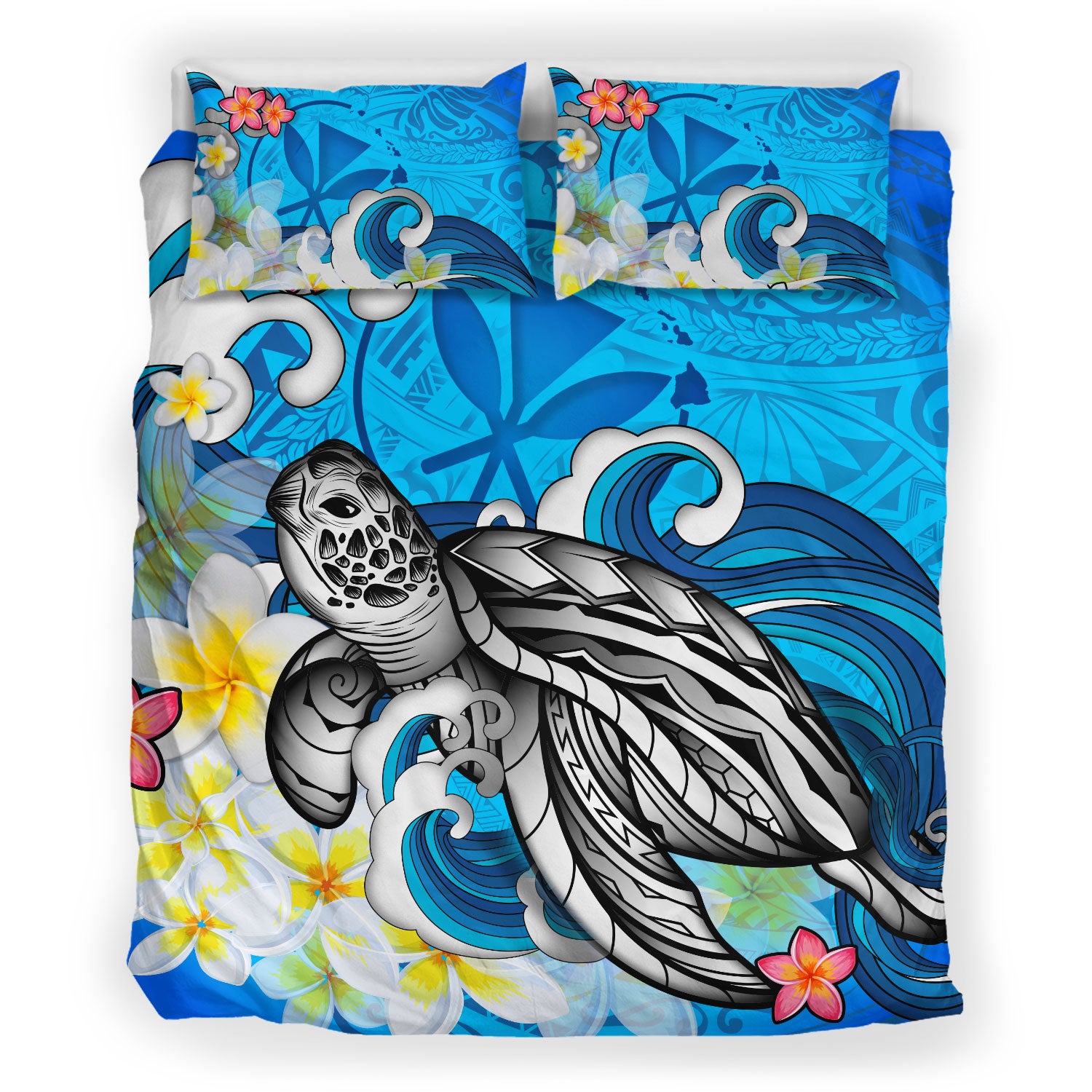 Hawaii Bedding Set Turtle With Plumeria Flowers