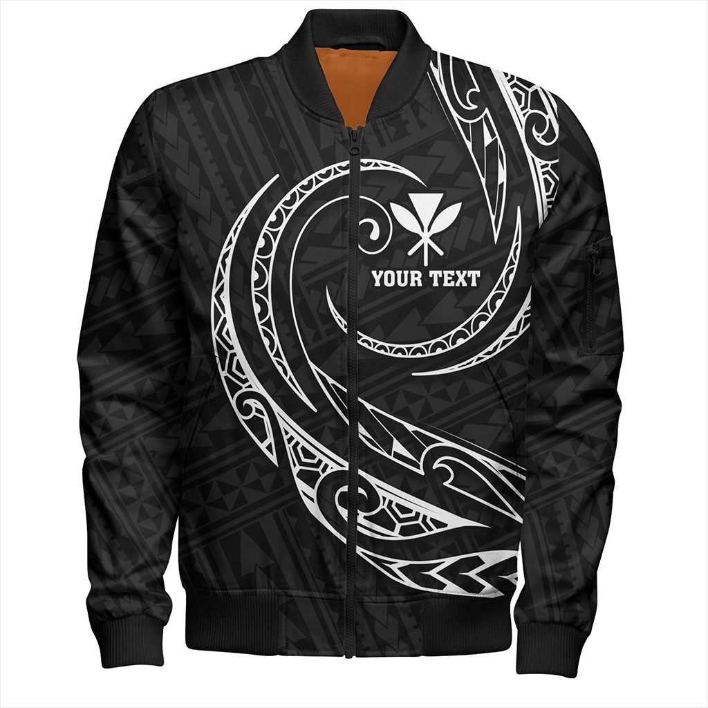 Hawaii Bomber Jacket Custom Kanaka Map Polynesian Tribal Wave