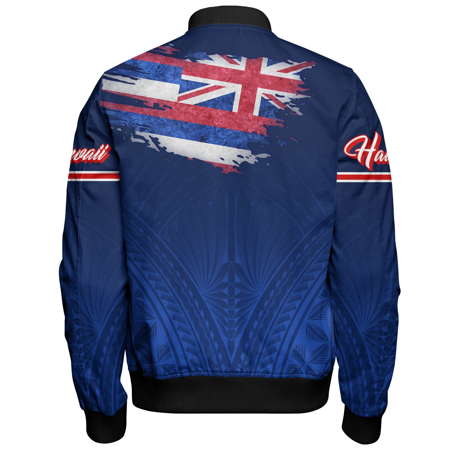 Hawaii Bomber Jacket Hawaii Flag Blue Color Polynesian Patterns Grunge Style