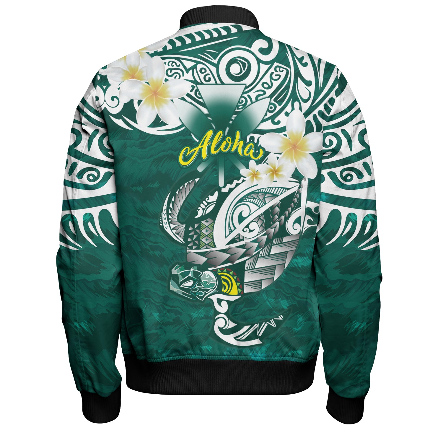 Hawaii Bomber Jacket Polynesian Honu With Plumeria Tropical Ocean Wave