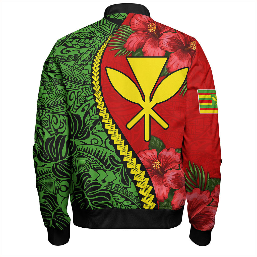Hawaii Bomber Jacket Tribal Polynesian With Hibiscus Flower