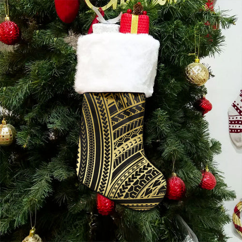 Hawaii Christmas Stocking Polynesian Pattern Gold