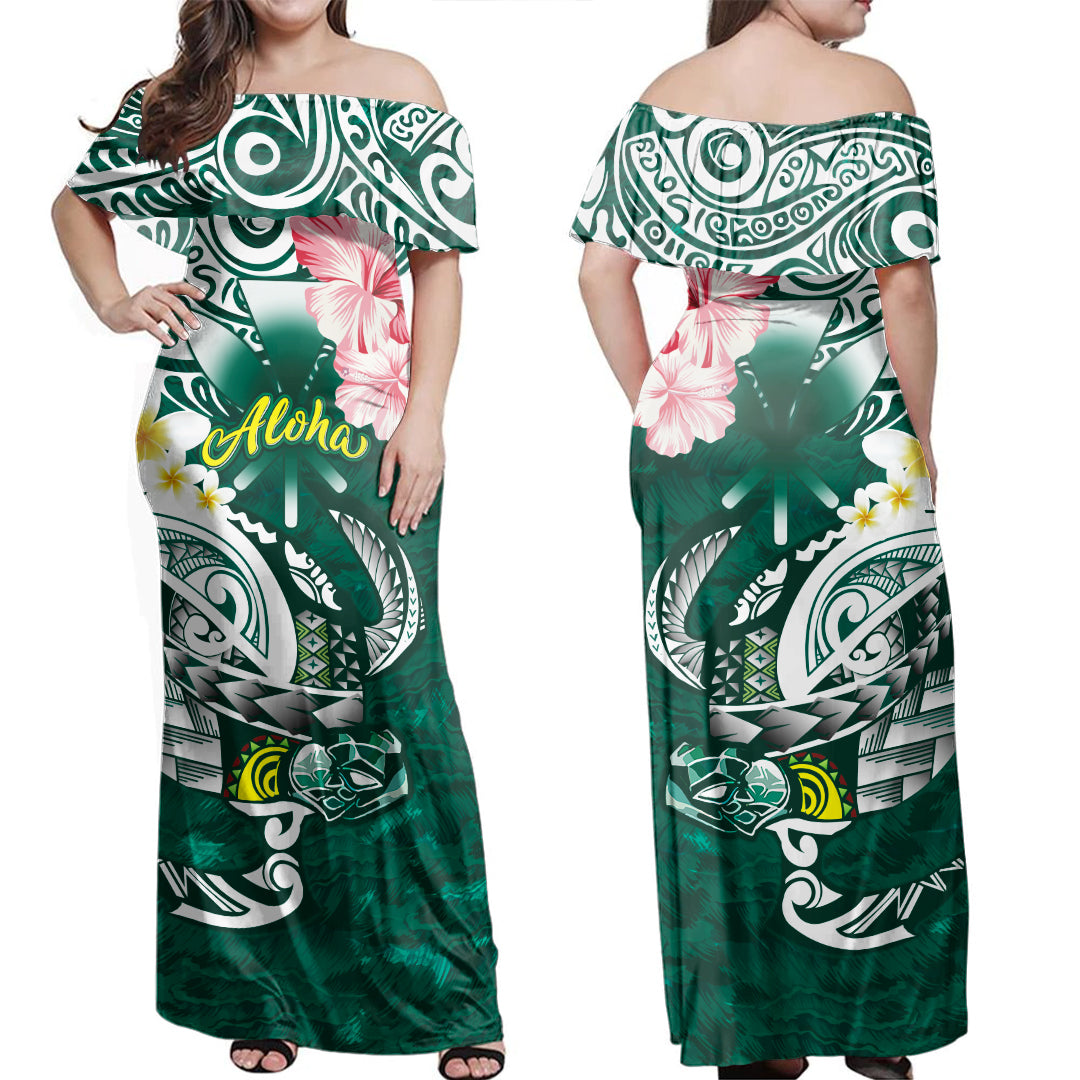 - Our Women Off Shoulder Long Dress and Hawaiian Shirts made of 95% Polyester and 5% spandex manufactures high-quality thermal-transfer printed products and keeps you comfortable, cool, and dry while you work and play.