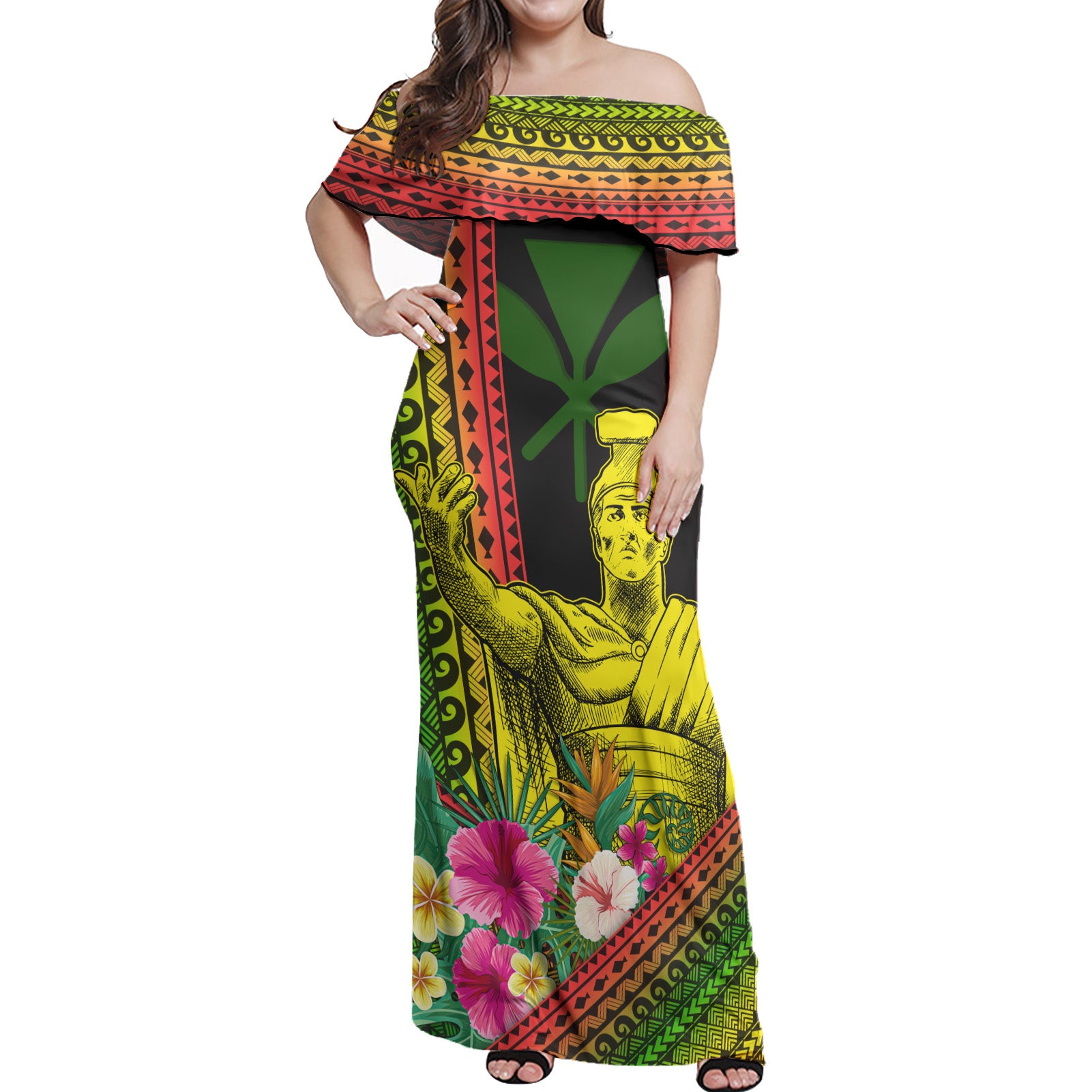 - Our Women Off Shoulder Long Dress and Hawaiian Shirts made of 95% Polyester and 5% spandex manufactures high-quality thermal-transfer printed products and keeps you comfortable, cool, and dry while you work and play.