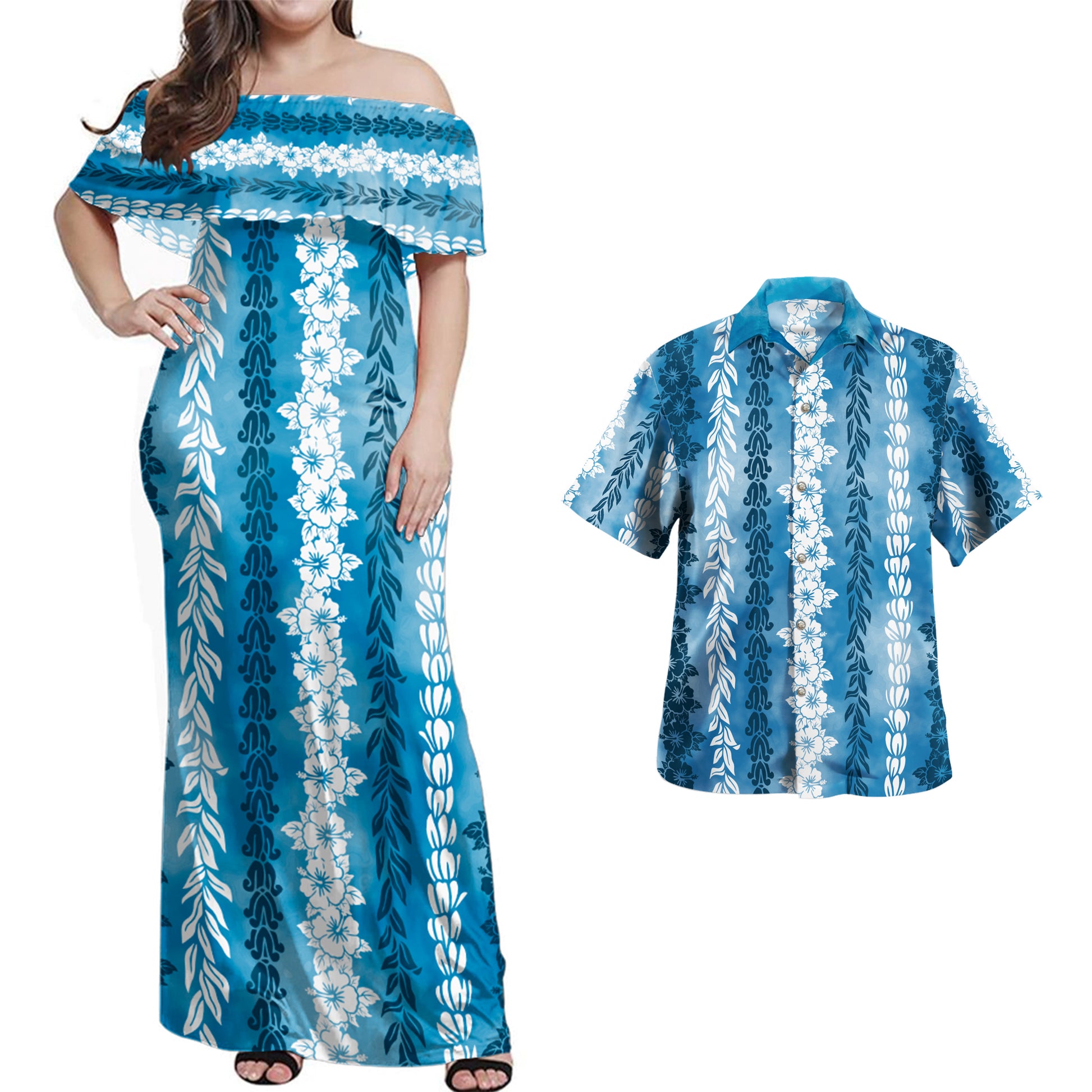 Hawaii Combo Off Shoulder Long Dress And Shirt Flower Lie Beautiful