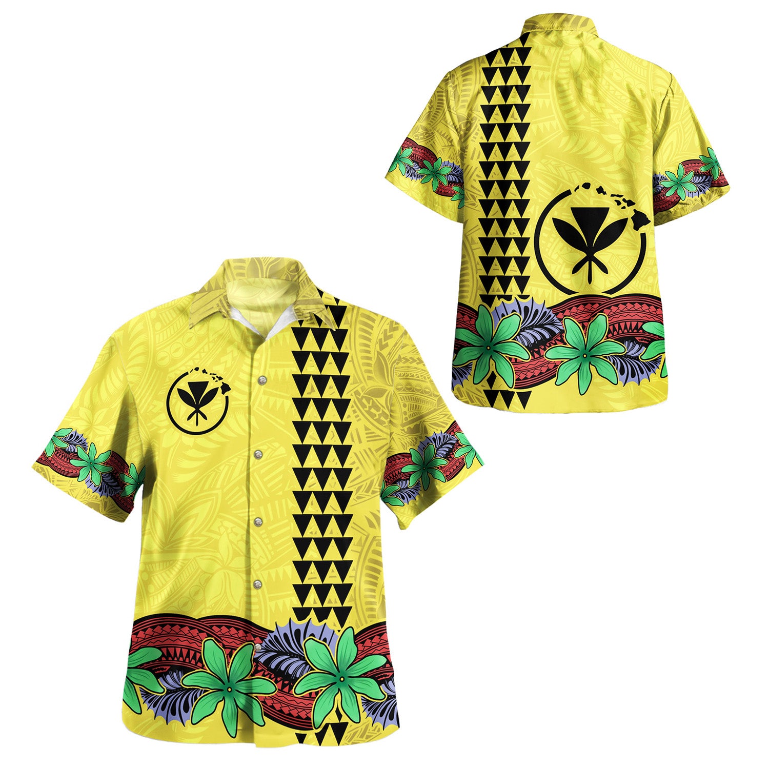 Hawaii Combo Off Shoulder Long Dress And Shirt Kanaka Maoli Map Seal Tropical Flowers Yellow Color