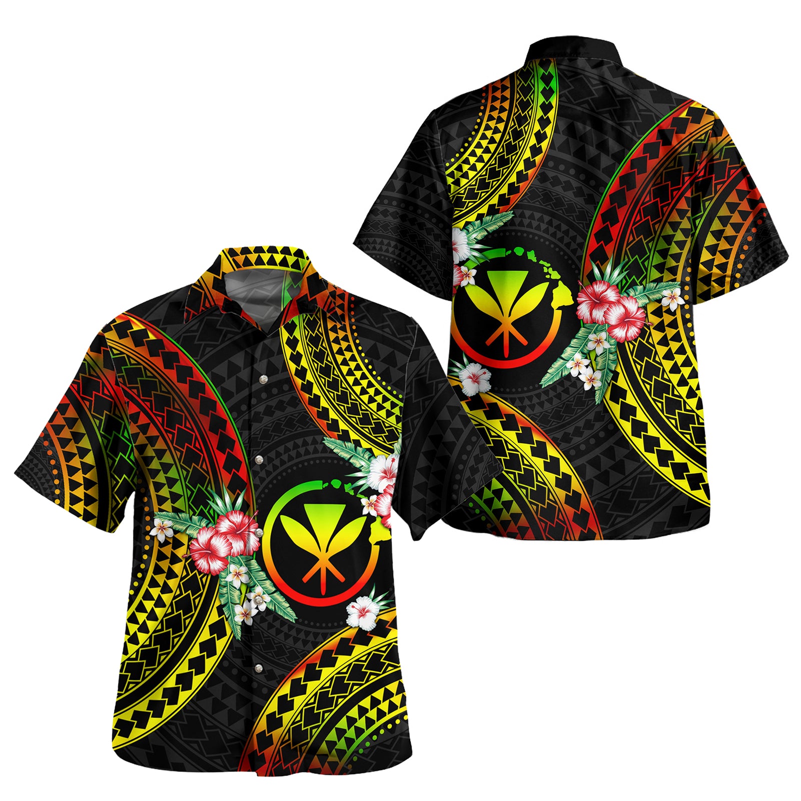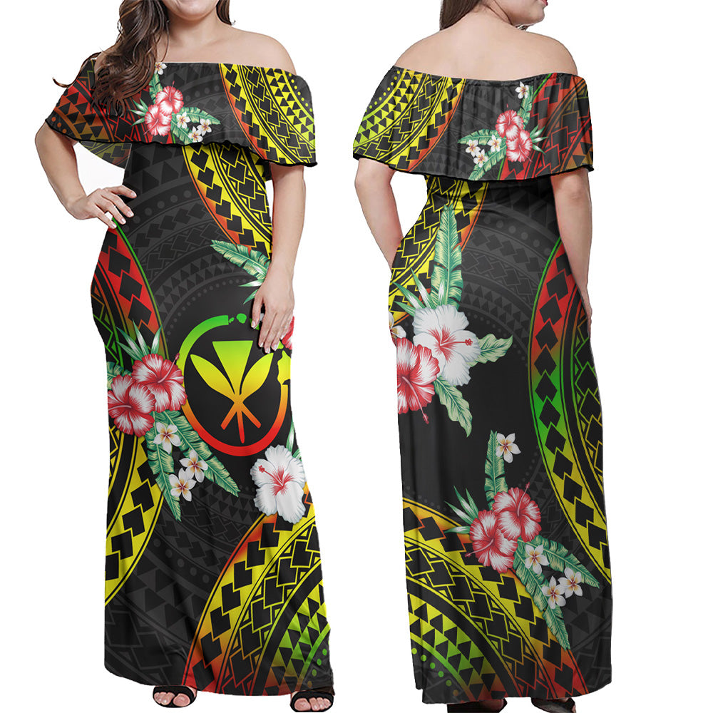 Hawaii Combo Off Shoulder Long Dress And Shirt Kanaka Maoli Reggae Color Hibiscus Flowers