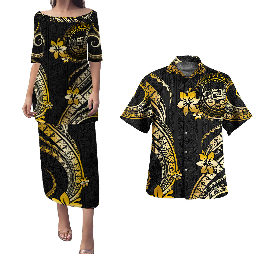 Hawaii Combo Puletasi And Shirt Golden Polynesian Pattern
