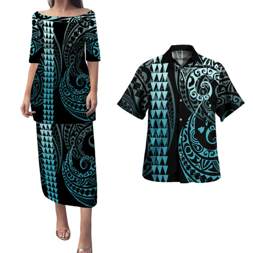 Hawaii Combo Puletasi And Shirt Kakau Style Turquoise
