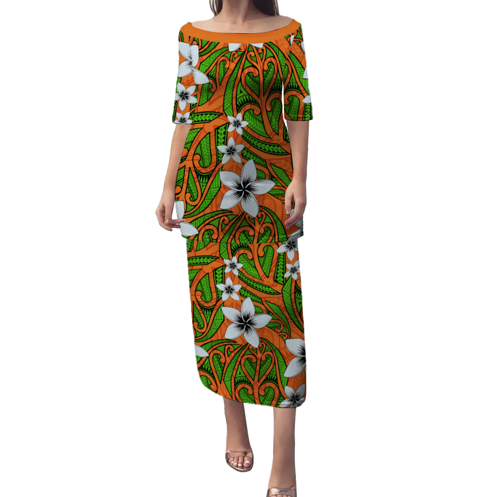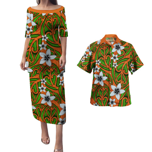 Hawaii Combo Puletasi And Shirt Maori Pattern Plumeria
