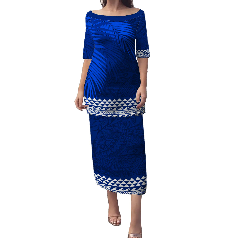 Hawaii Combo Puletasi And Shirt Polynesian Fabric Leaves