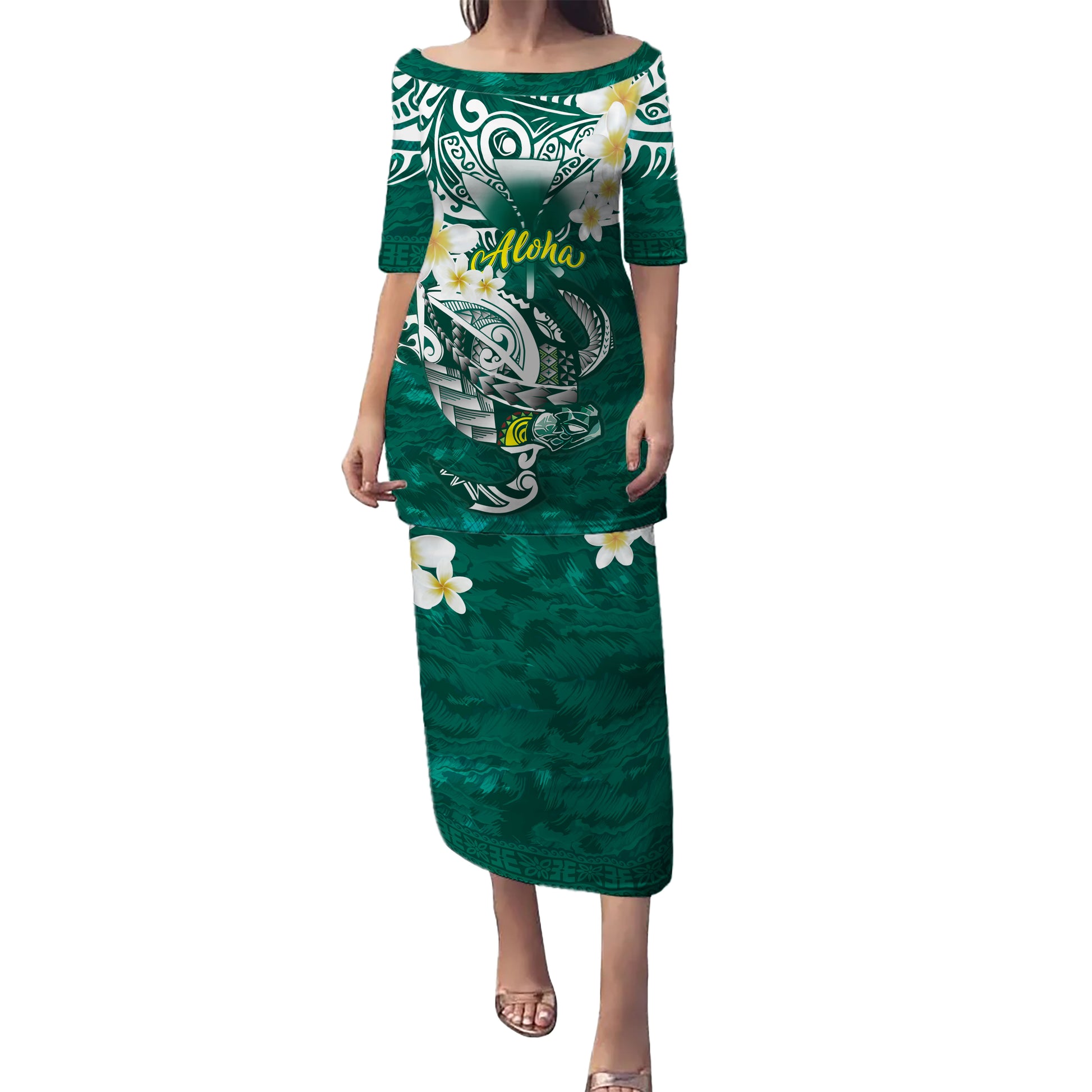 Hawaii Combo Puletasi And Shirt Polynesian Honu With Plumeria Tropical Ocean Wave