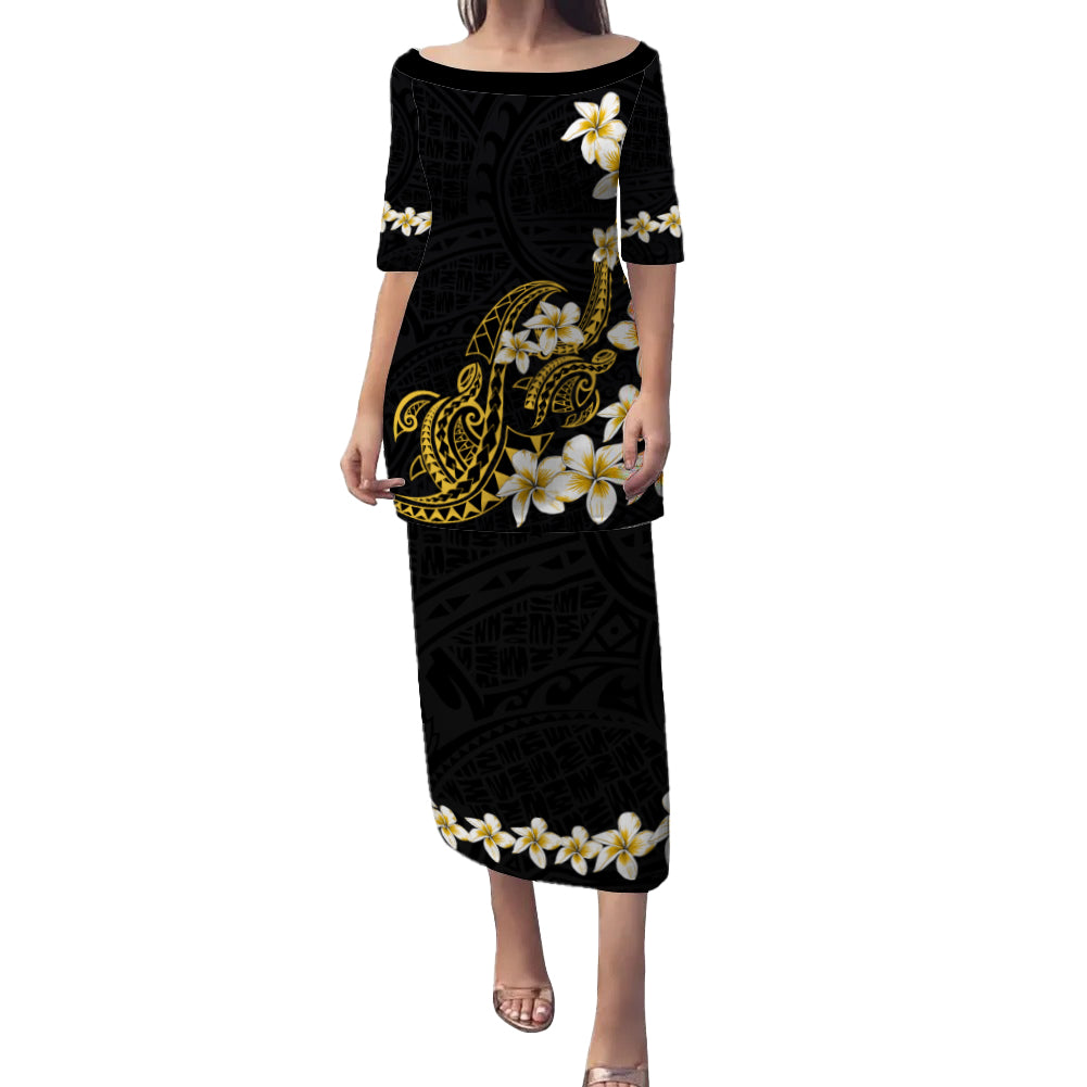 Hawaii Combo Puletasi And Shirt Polynesian Tribal Tattoo Plumeria Flower
