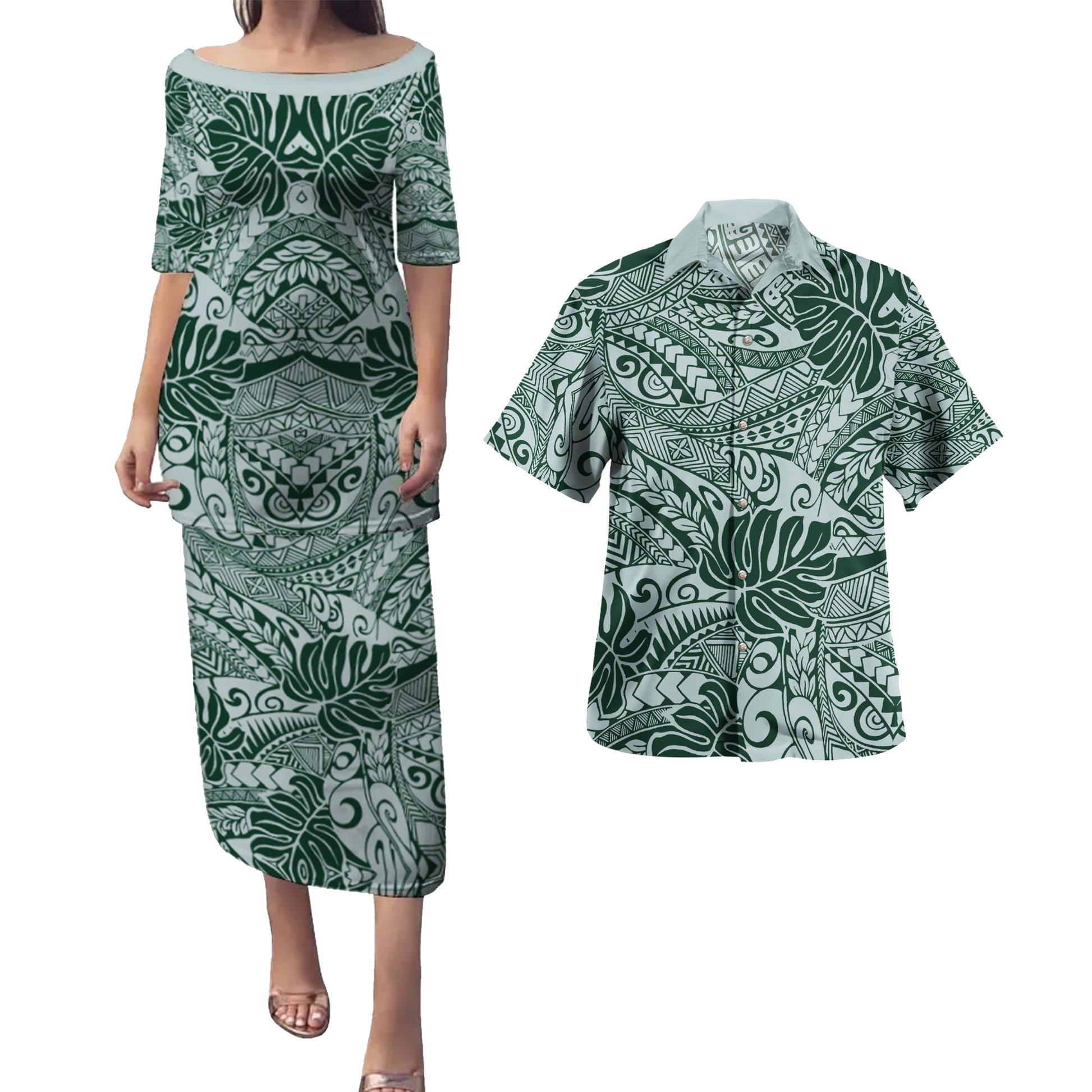Hawaii Combo Puletasi And Shirt Tribal Leaf