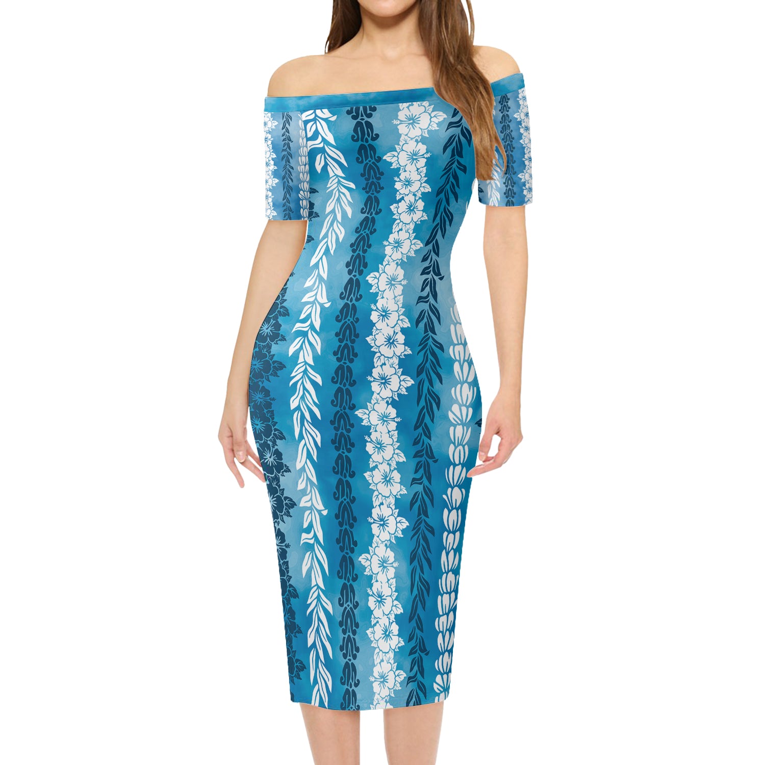 - Our Women Off Shoulder Long Dress and Hawaiian Shirts made of 95% Polyester and 5% spandex manufactures high-quality thermal-transfer printed products and keeps you comfortable, cool, and dry while you work and play.