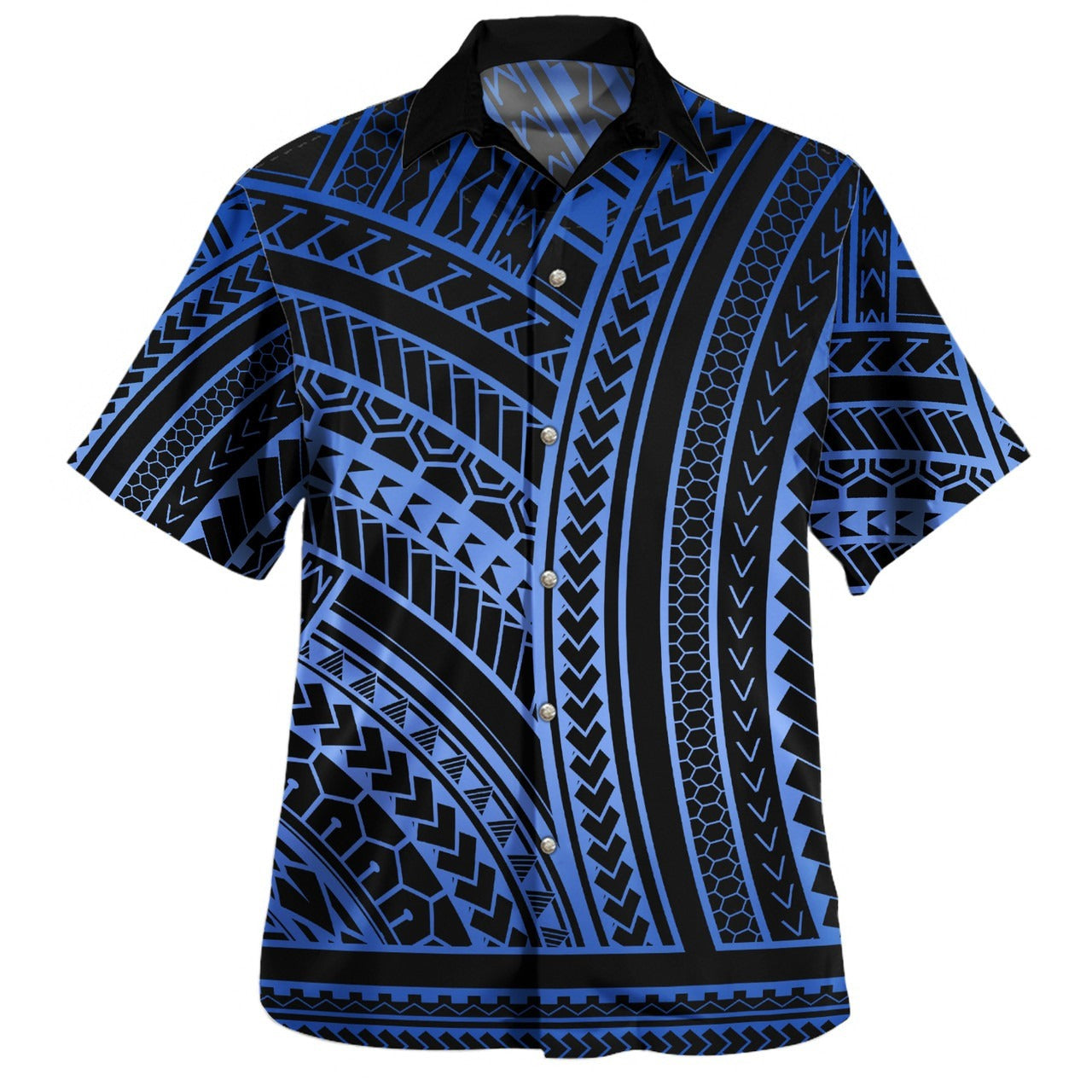 Hawaii Combo Short Sleeve Dress And Shirt Polynesian Pattern Tattoo Blue