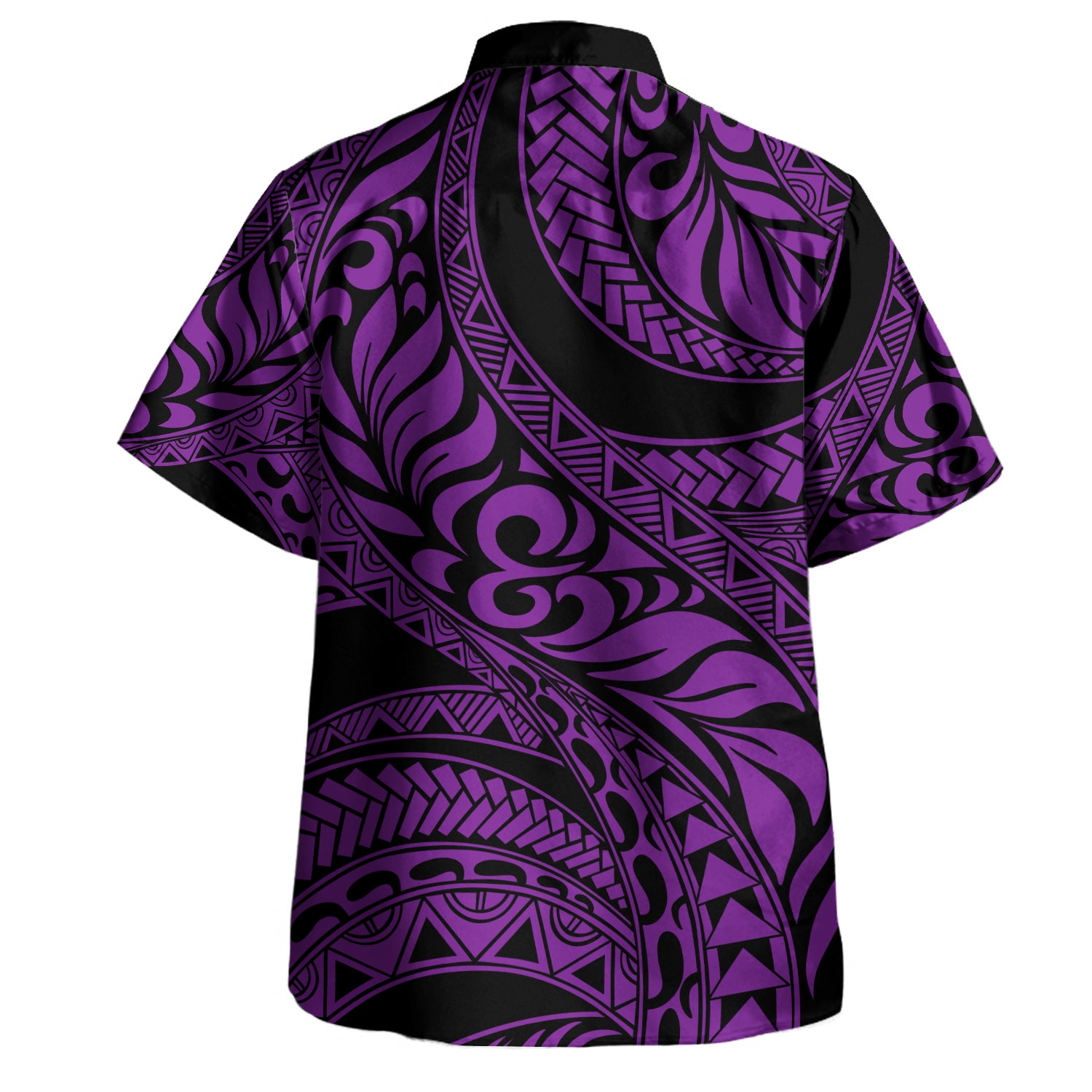 Hawaii Combo Short Sleeve Dress And Shirt Tribal Pattern Polynesian Purple