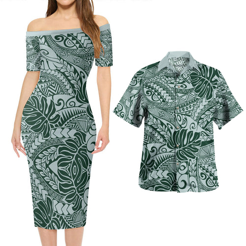 Hawaii Combo Short Sleeve Dress And Shirt Tribal Polynesian Pattern Leaf