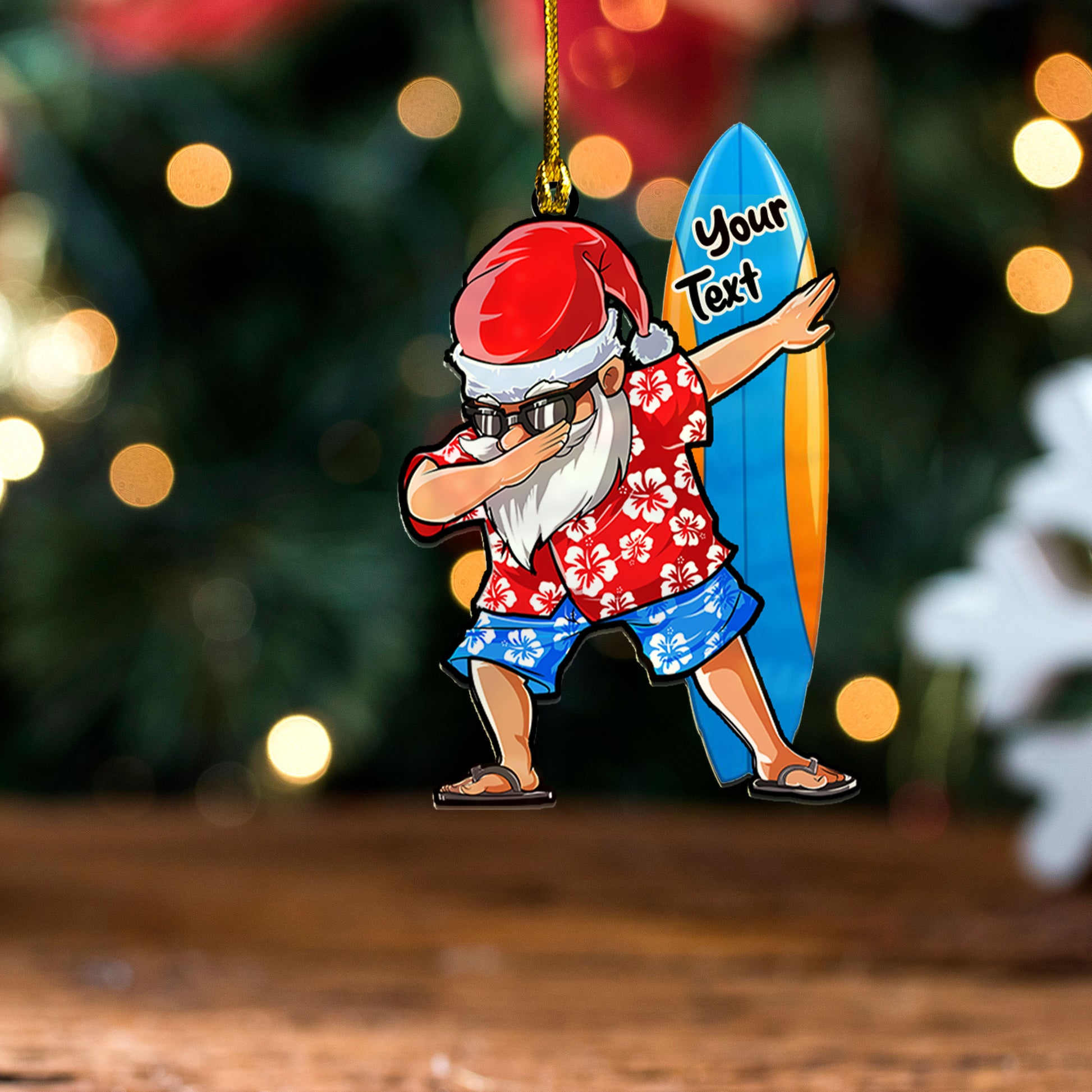 Hawaii Custom Personalised Acrylic And Wooden Ornament Mele Kalikimaka Dabbing Santa