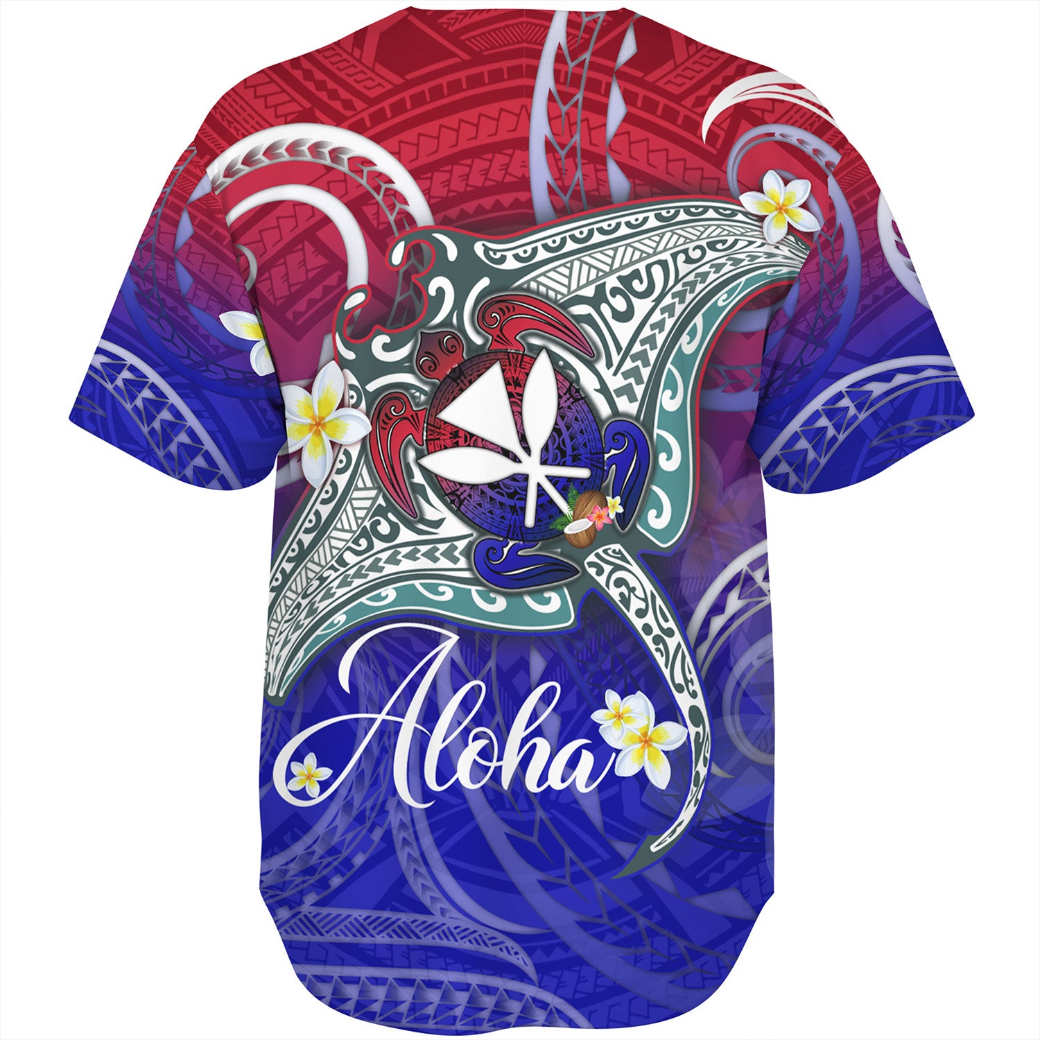 Hawaii Baseball Shirt Kanaka Maoli Manta Ray With Turtle Plumeria Mixed Polynesian Style