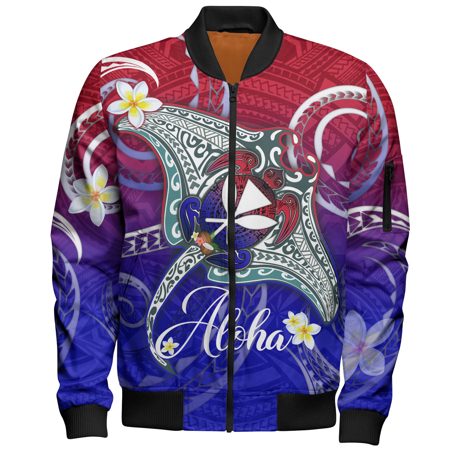 Hawaii Custom Personalised Bomber Jacket Kanaka Maoli Manta Ray With Turtle Plumeria Mixed Polynesian Style
