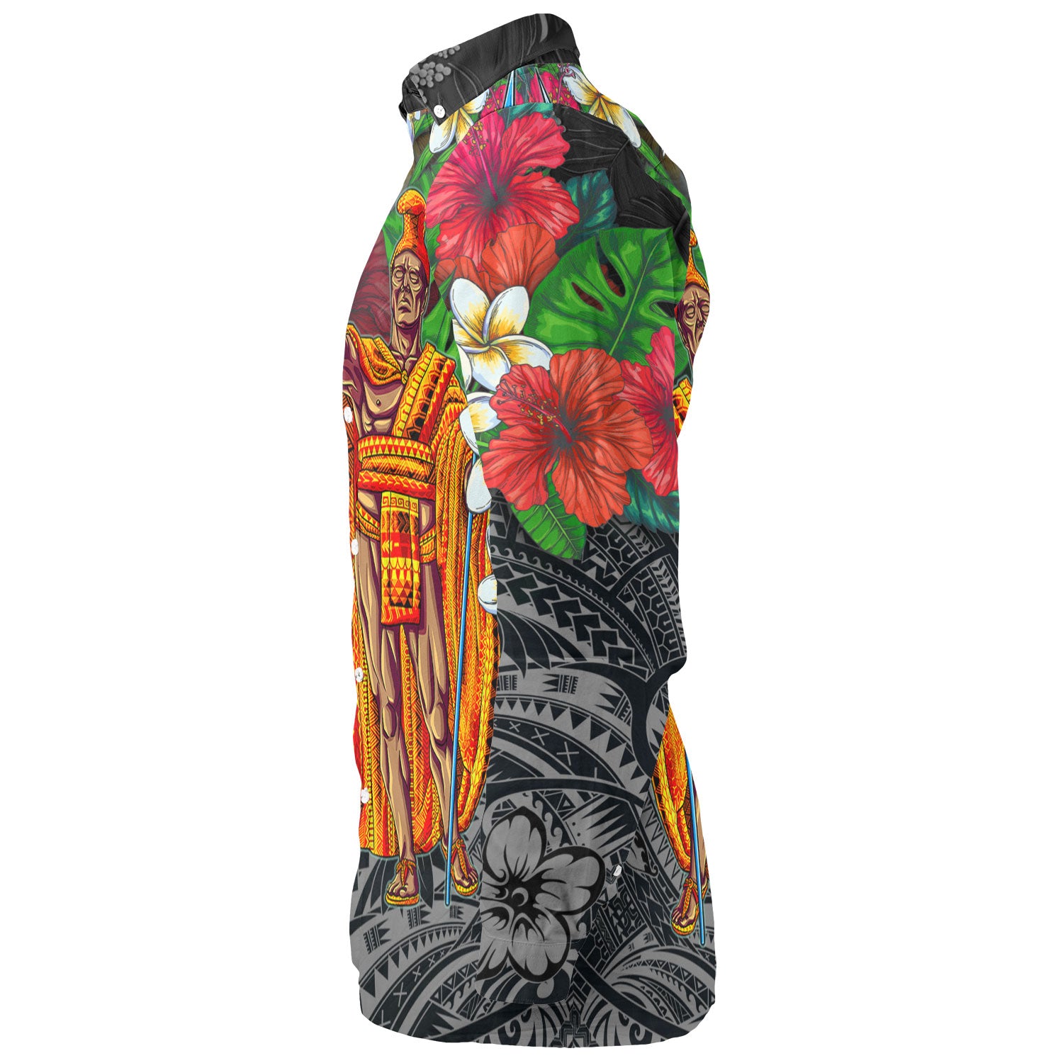 Hawaii Long Sleeve Shirt King Kamehameha Hibiscus And Plumeria With Palm Branches Vintage Style