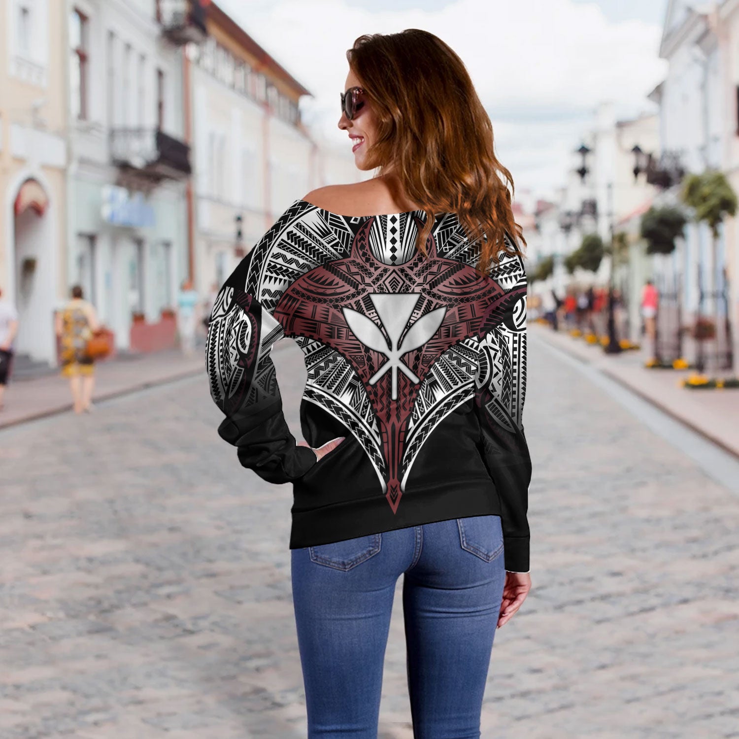Hawaii Off Shoulder Sweatshirt Tribal Patterns Manta Ray Tatau Style